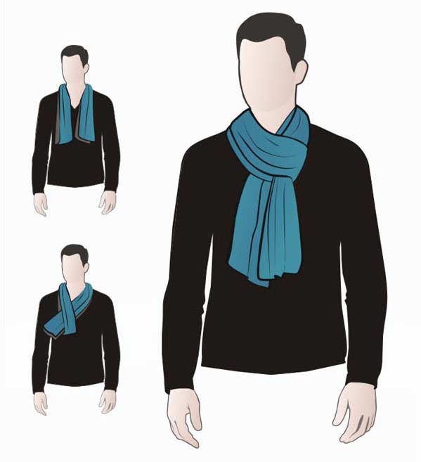 A simple yet effective way to wear a scarf thats suitable for any occasion. Open the scarf out to full length, fold in half and allow both ends to touch, throw the folded end around your neck, thread the loose ends through the newly created loop, then pull just enough to tighten as you wish.