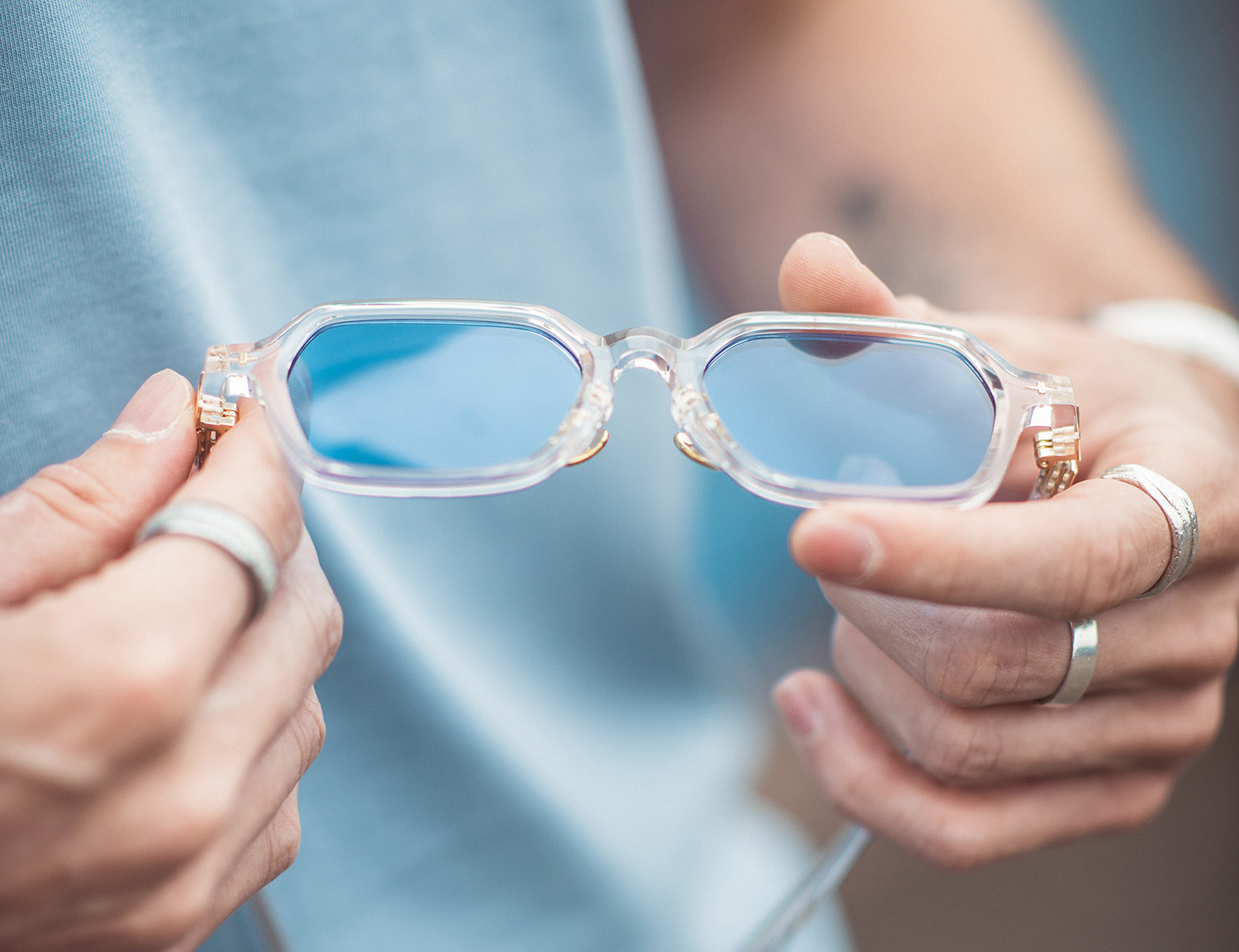 First up, we have the ‘Brian’, which boasts an impressive six different colourway designs, ranging from a green frame to clear with blue lenses (my personal favourite). These styles definitely have a chunky retro feel, thanks to the shape and hardware features.