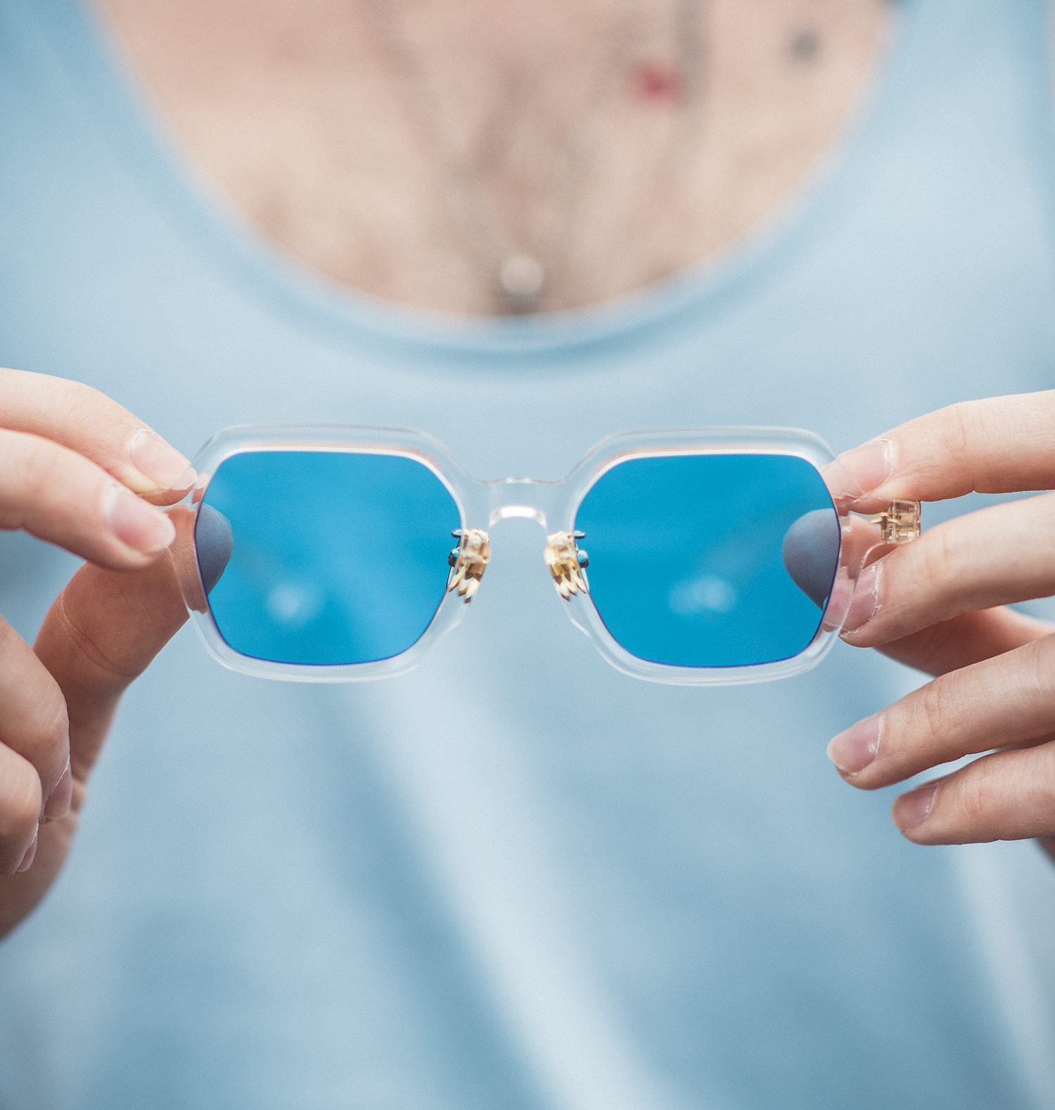 First up, we have the fantastic-looking ‘Walter’ model, which is available in an impressive eight colour-ways. I chose the clear and blue model – consisting of a transparent frame with contrasting blue lenses. The frame features a chunky style design (which is undeniably retro), while also incorporating gold hardware within each arm and for the bridge (where the glasses sit on the nose).