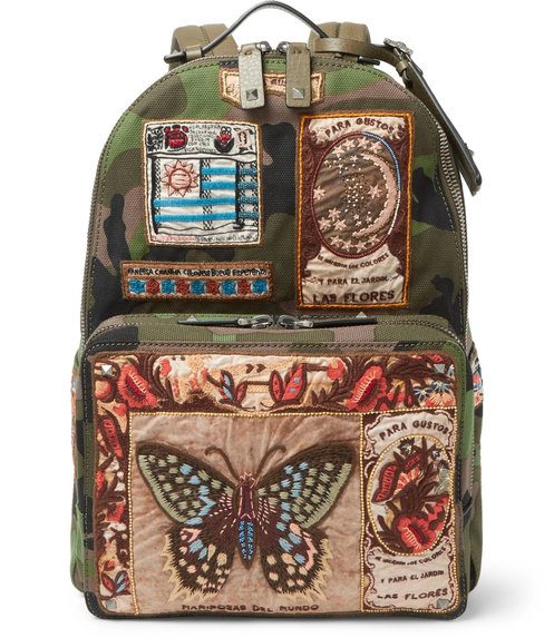 Valentino Leather Trimmed Appliqued Camouflage-Print Canvas Backpack