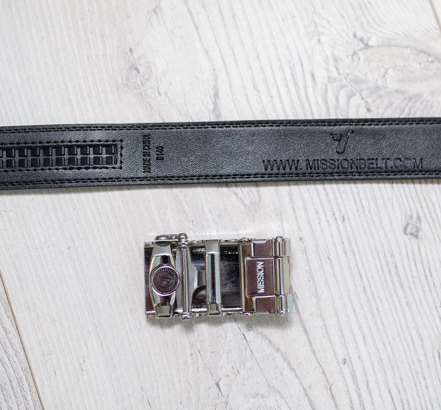Mission Belts offering comes straight into this round up boasting the cheapest price point of all of the five belts at only $34.95, which is a relative bargain! It would be optimistic to believe it would compare well against the competitors. The leather is genuine, albeit with a synthetic coating, which is apparent once you touch the material. The buckle is again silver, with a visible glow to its face in direct light.