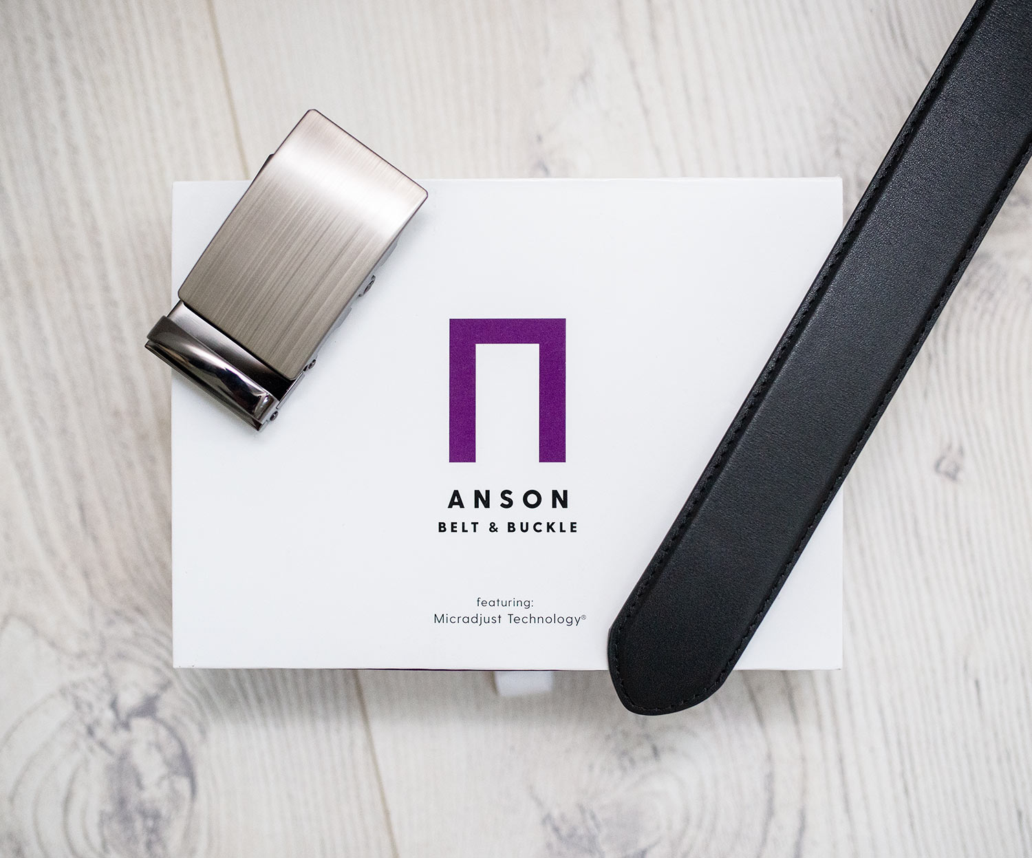 Finally, we have the Complete Belt from Anson, which ticks a lot of boxes from the get-go with some attractive packaging – card box finished in white and purple with a pull out drawer. Inside, there are cut out sections to fit the belt looped and the buckle.