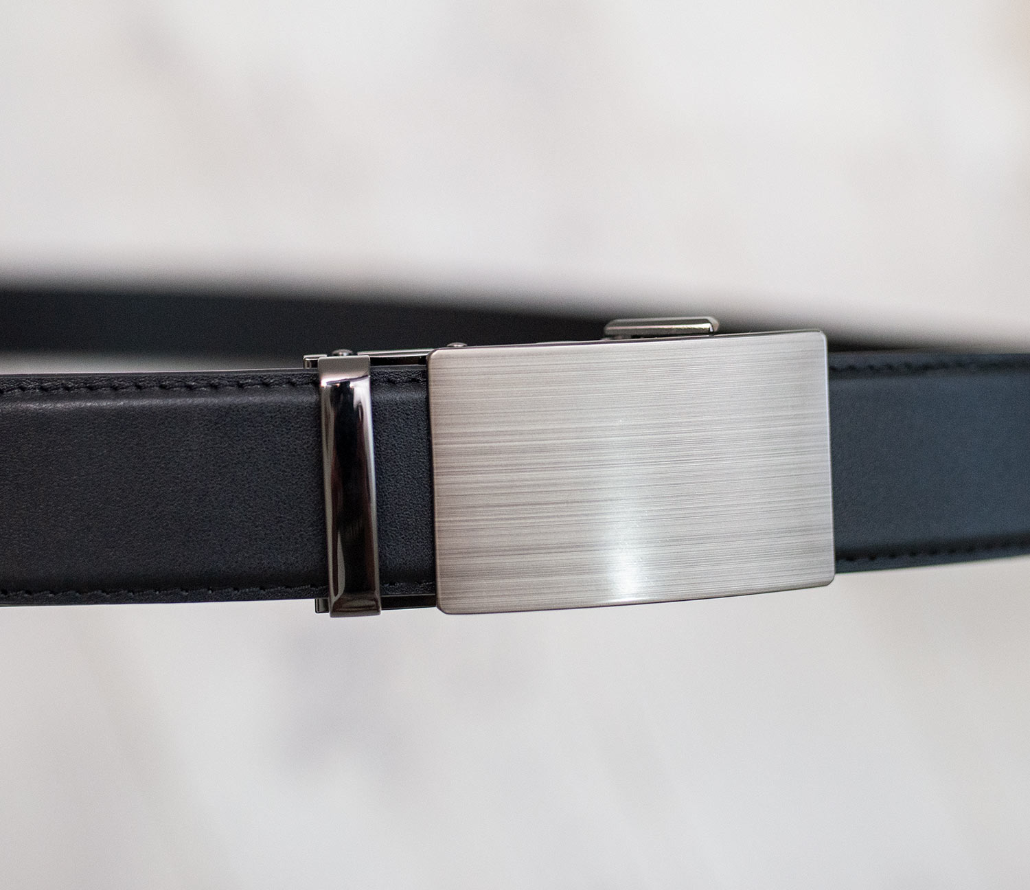 Slidebelts get the ball rolling by bringing a dual-ratchet mechanism to the table. Rather than using a handle to release the buckle, you simply apply pressure to the right-hand side and pull it away from the belt, and it will unclasp, allowing you to remove the belt easily. However, when clipping the buckle into the strap, you will need to use a lot of force as it is very stiff to attach. The quality is overall very good, nice material, albeit faux leather for my review (but the company offers genuine leather along with canvas too). The buckle itself is silver in appearance, but also very shiny and will gleam brightly when the sun catches the metal.