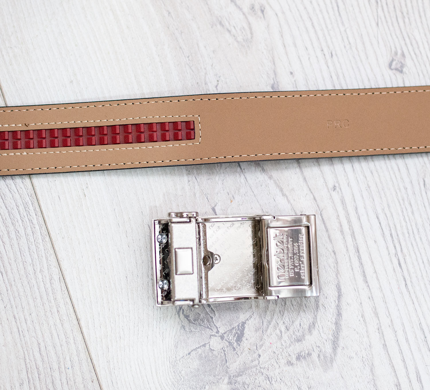 Nextbelt recommends measuring your waist, adding 2 inches and then proceeding to trim the leather down. The belt works as you would expect, the track on the reverse features a stand-out red colour which I personally like, however, the release handle is quite fiddly and would be quite difficult to undo in a rush.