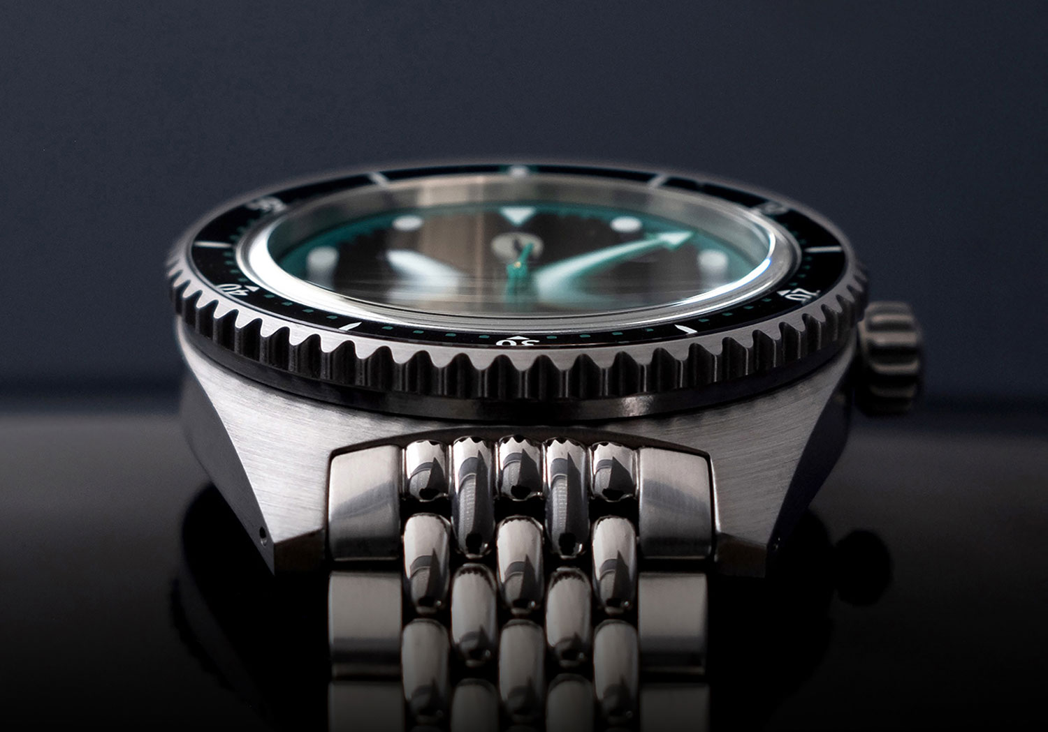 • A 7mm fully lumed (Swiss Super-LumiNova® BWG9) ergonomic screw-down crown that’s easy to grip