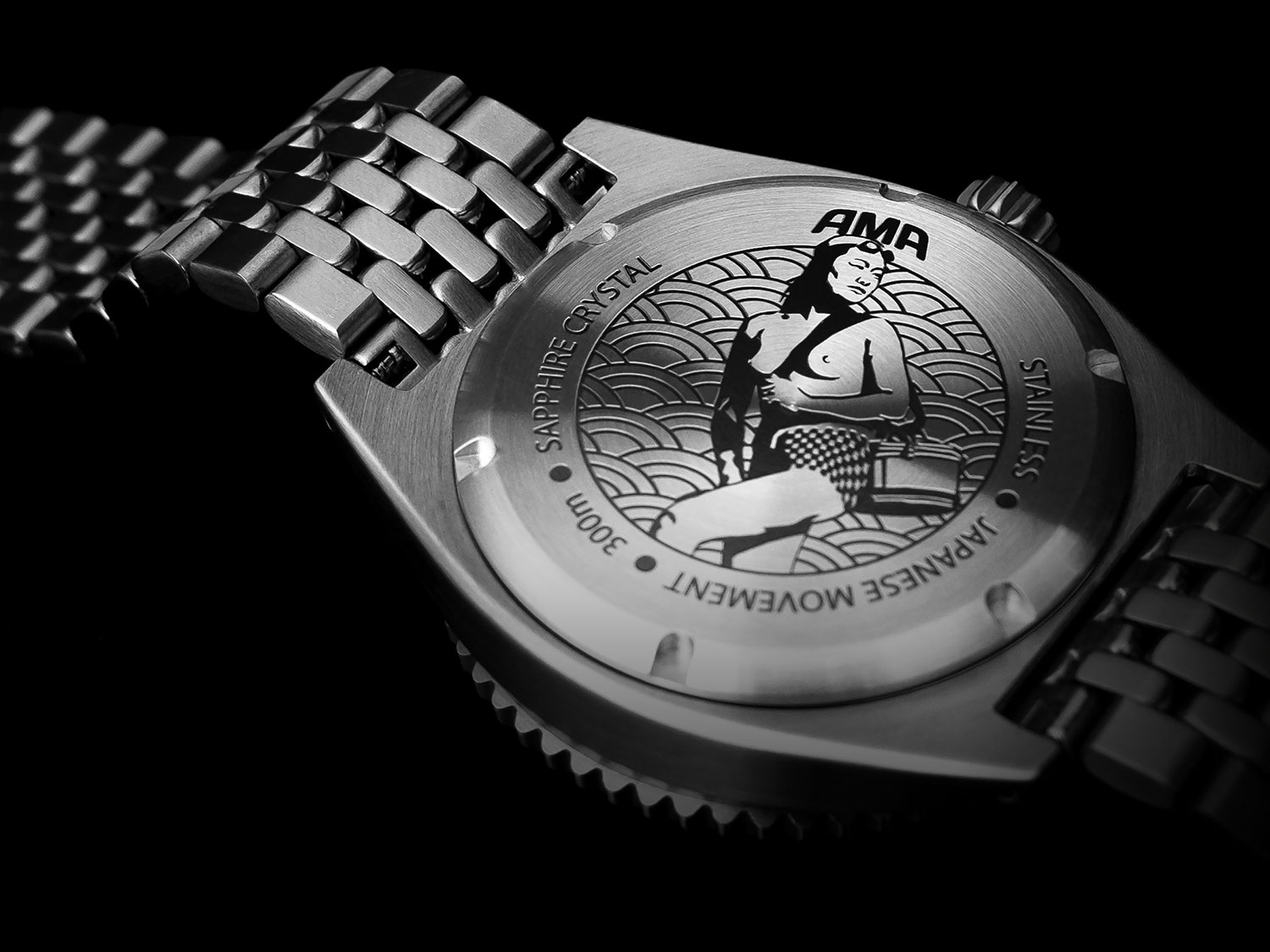 The reverse of the Ama Diver proudly features an engraving which is inspired by the 1950’s photography from Iwase Yoshiyuki, who captured imagery of the local Ama divers in his village. Albany has included this type of design to recognise the impact of these lesser-known deep-sea explorers as this tradition begins to fade due to the modern world.