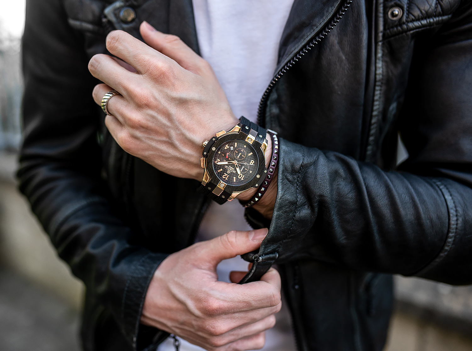 When you first cast your eyes upon the Gold Speedracer, you are instantly impressed with its considerable shape and well-defined edges, presenting contrasting colours in solid black and rose gold, it is truly a feast for the eyes!