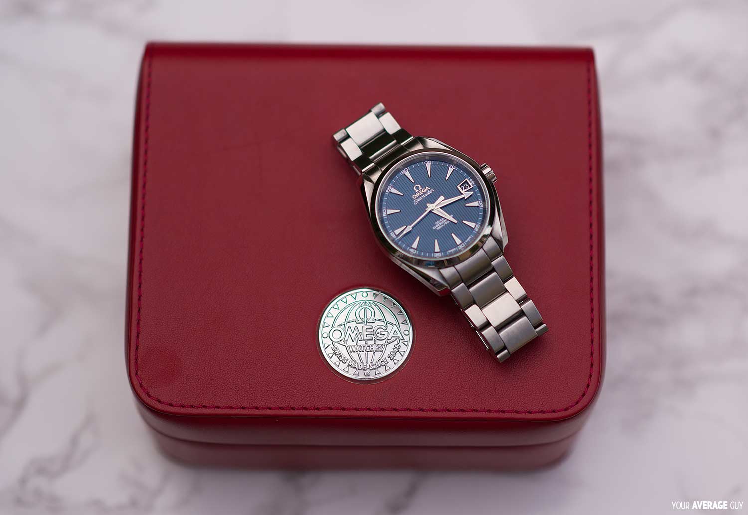 By chance, I browsed through the online store of the well respected Watchfinder and they just so happened to have the blue faced Omega Aqua Terra Seamaster that I had been looking for in stock! Since the retail price of the watch is quite expensive, my thoughts of opting for a preowned watch were getting stronger and after seeing this one, my decision was more or less made and I proceeded with the purchase. Watchfinder is famous among watch lovers, selling preowned luxury timepieces at a reduced cost. Employing experts who examine all of their new stock inside and out thoroughly, ensuring each item is 100% authentic and in perfect condition. Mine had very little use, still in fact under the original Omega Warranty, with the added bonus of including the original box and serial numbered card.