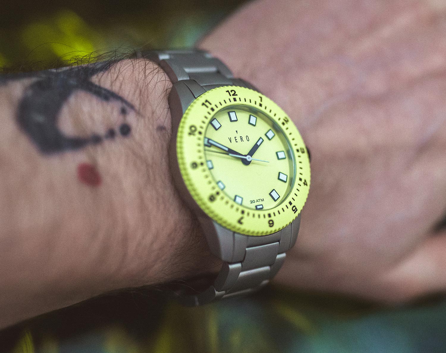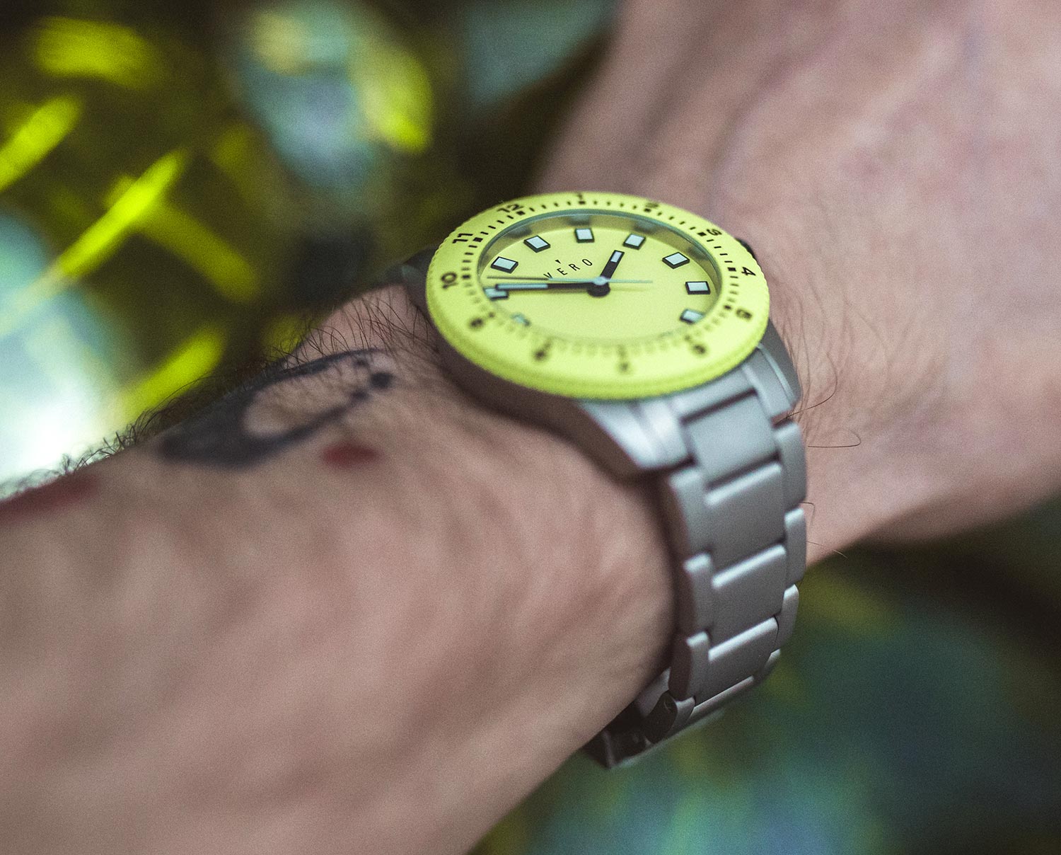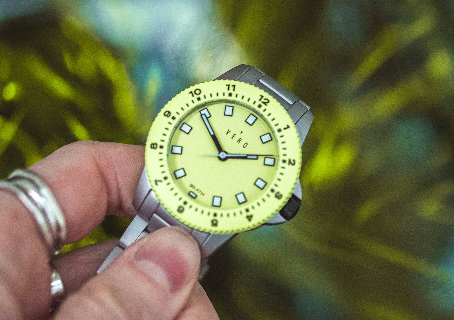 The Vero Open Water 38 swell is not your average-looking watch; the bold yellow/green face is not something that would work for every occasion. First and foremost, it is a timepiece that has been designed for the active consumer – it looks its absolute best when paired with sporty-looking clothing (outdoor adventure gear or even gym wear). That said, it can still look good with casual attire if paired correctly. Just remember to take advantage of the vibrant facia colour to complement your outfit choices.