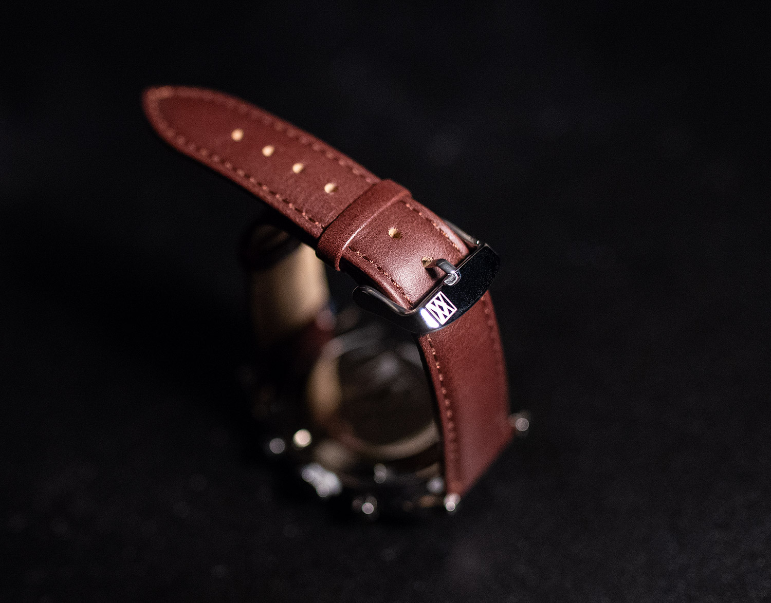 There is no doubt that the Wishmoor Pioneer Watch is a beautiful thing to behold; the round face sitting within a 40mm stainless steel case has an almost retro appearance, yet this only adds to the charm. Thanks to its chronograph functionality, the addition of the two extra dials fills the face admirably yet does not detract from the design (whereas often it creates an overly busy look!).