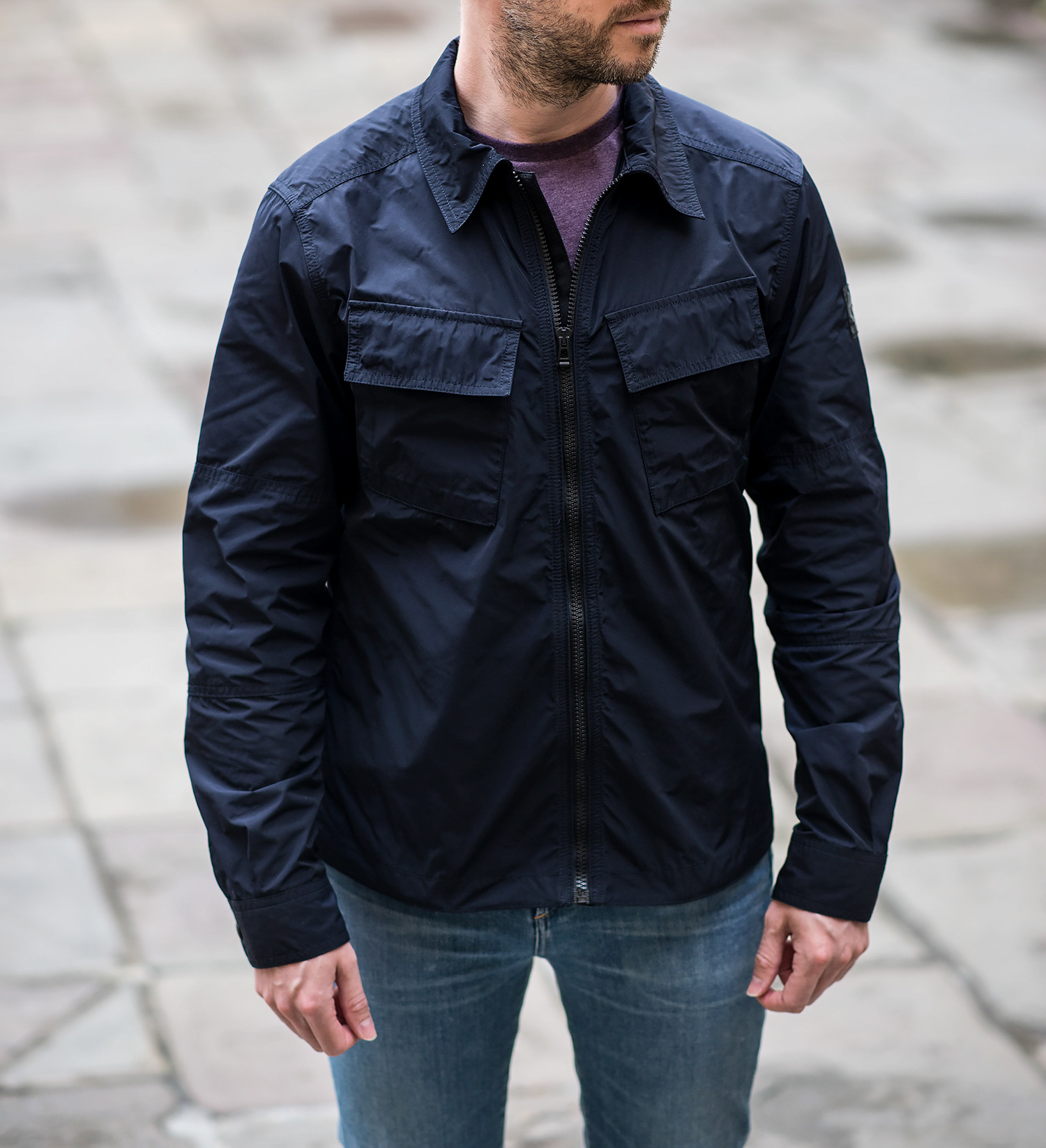 With the summer months approaching, a lightweight jacket can be an effective fashion accessory in your arsenal against the ever-changing weather (particularly if you live in the UK!). Belstaff has a large selection of outerwear, many of which tick all the boxes for what I am looking for. After browsing their current collection, I narrowed it down to the Belstaff Talbrook Navy Jacket, which boasts of a lighter weight fabric with waterproof properties. Let’s see if the well established English brand has a winner on its hands!