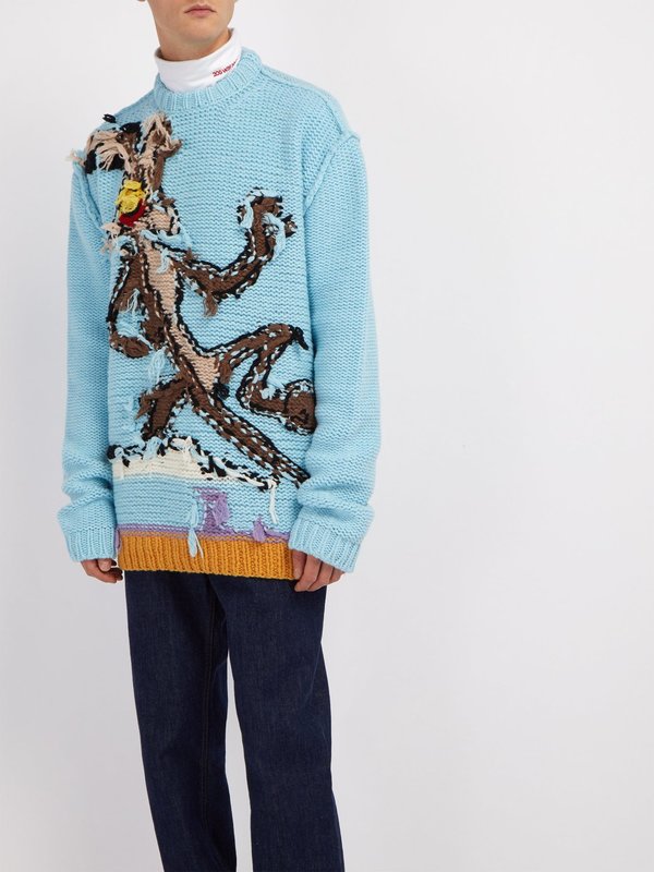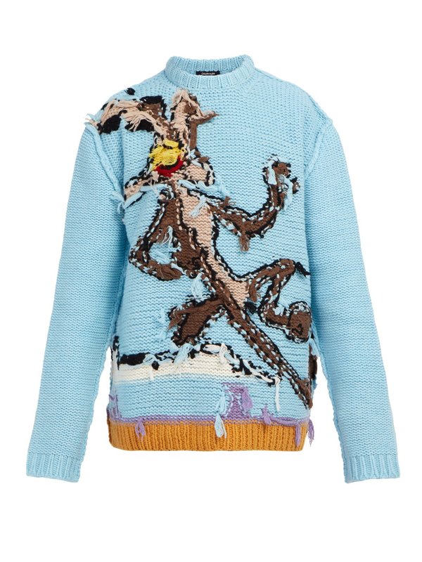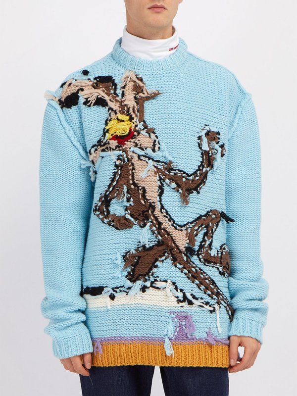 Sometimes an item of clothing appears which just makes you stop and take notice, whether that is out of love or disgust is largely up to individual taste! Opinions on fashion can divide the population, one such item is the Calvin Klein 205W39NYC Wile E Coyote Sweater.