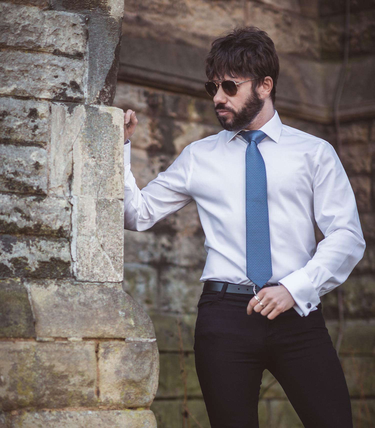 I’m starting the ball rolling with a sleek white button-up, undoubtedly the most popular shirt colour, which can be dressed up with a tie (and perhaps worn with a blazer) or worn more casually with the collar worn open (showing off a hint of chest).