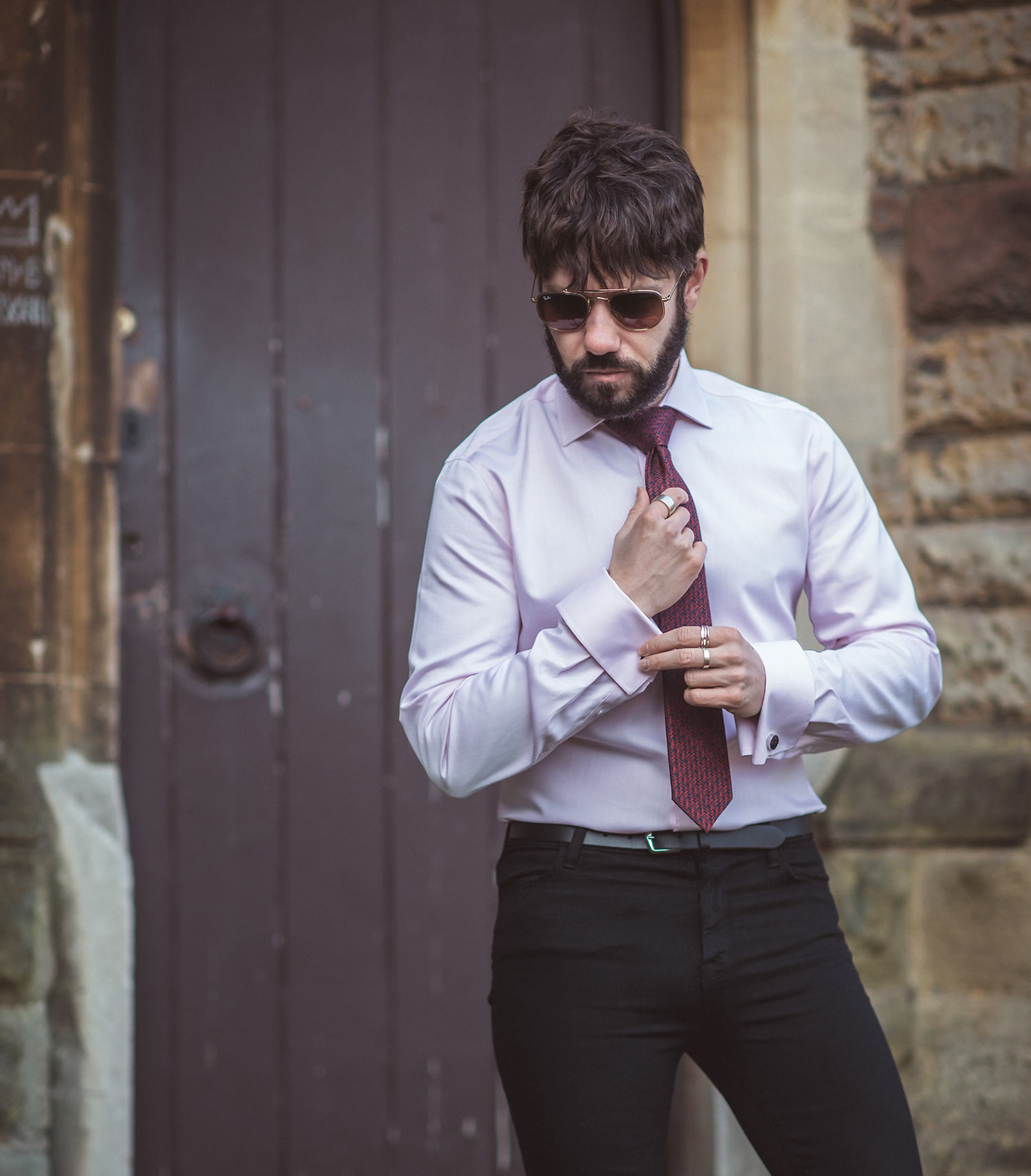 The shade of pink is pale and unobtrusive yet is still striking and adds a little more warmth compared to a classic white shirt (ideal for Valentine’s Day). You can wear this slim-fit shirt smart with a complementary tie and cufflinks (as seen with the red in the photo) or dressed down with an unbuttoned collar and sleeves rolled up.