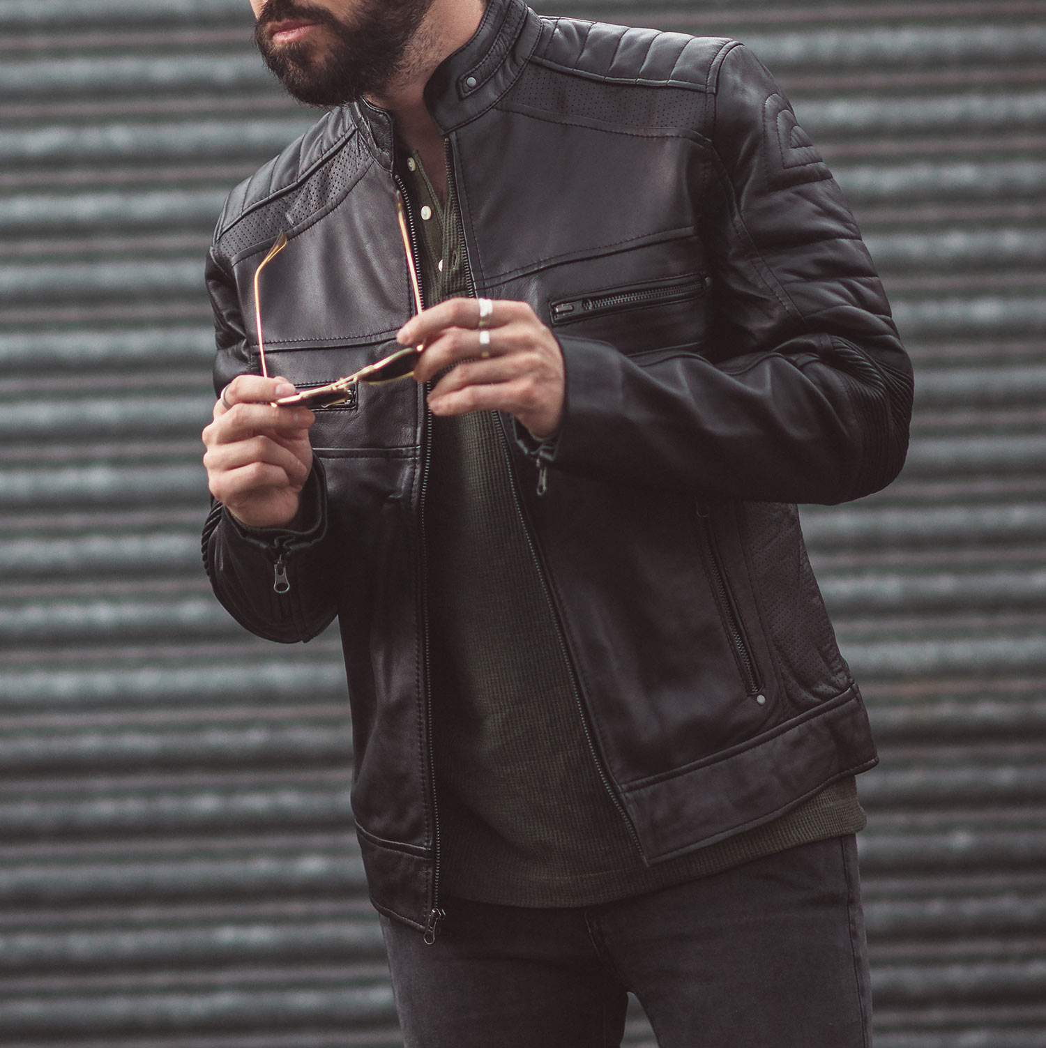 Lamb-leather is often used on premium leather jackets (AllSaints, in particular, are huge advocates of the fabric) due to its soft (almost silky) texture; however, it is quite delicate compared to its brothers and sisters. Conversely, top-grain leather delivers a smooth and refined look regularly found on premium sofas (or designer bags).