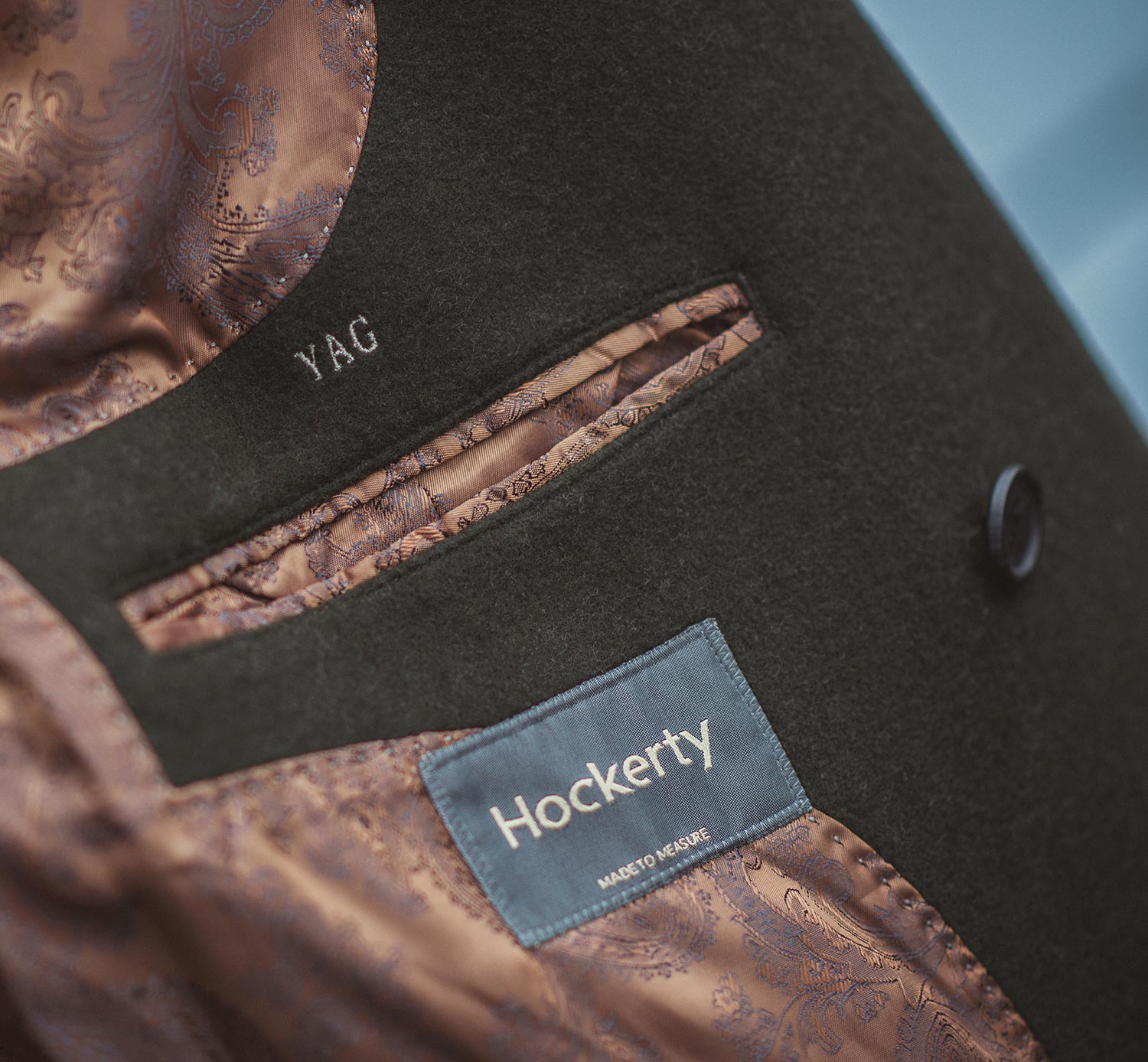 Accents – finally, you have the option of different-coloured thread for your pocket holes, contrasting collars, and even a monogramming effect inside the coat (I opted for an abbreviation of my blog name, “YAG”).