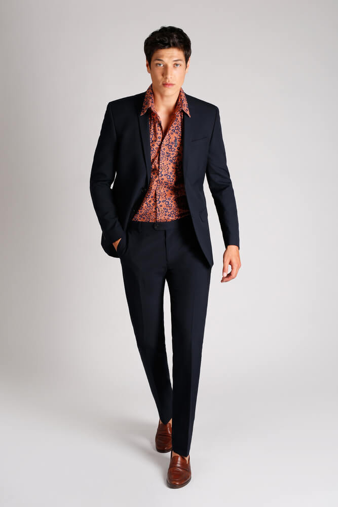 Plain tees are an effective way to tone down a shirt, but if you are looking for something bolder, why not try a printed design instead? If you go down this road, you will have an almost endless choice at your fingertips. If you are looking for inspiration, take a look at Ben Sherman, who famously made printed shirts a staple in men’s wardrobes as far back as the 60s. Stripes, abstract designs or even your favourite logo t-shirt can be worn with your chosen suit if the colours and tones complement each other – it can be an easy and effective ensemble if paired correctly!