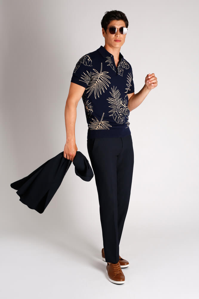 Tone down your smart suit for the approaching summer with a polo shirt, adding loafers and a selection of subtle accessories for a really fresh look! Keep it simple when picking your colours, slate grey, classic navy or even a beautiful dusty pink tick all the boxes for almost any occasion – from a trip to the office, a day at the races or even that upcoming wedding! Just be sure to complement the look with a polo shirt bathed in white or perhaps a baby blue.