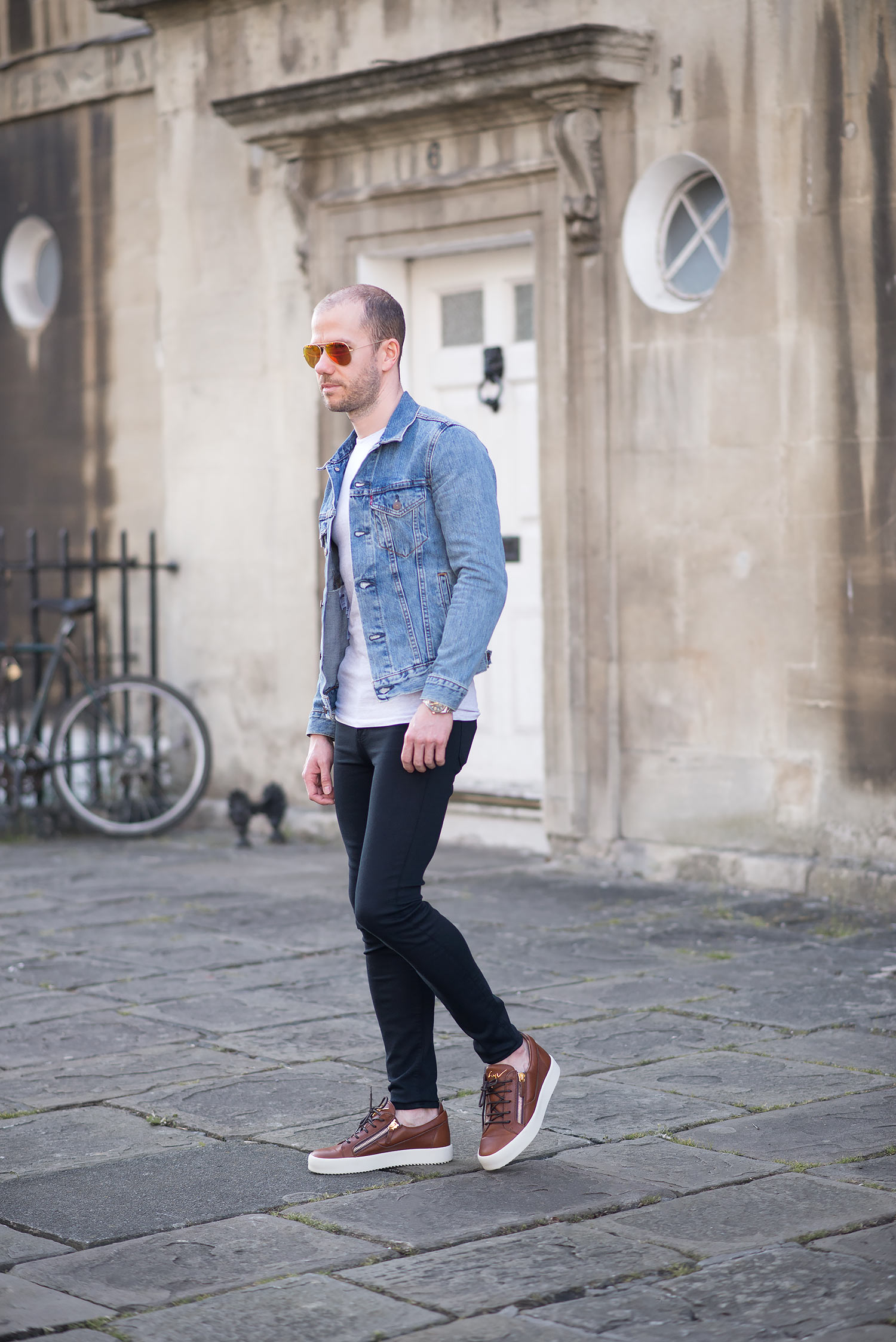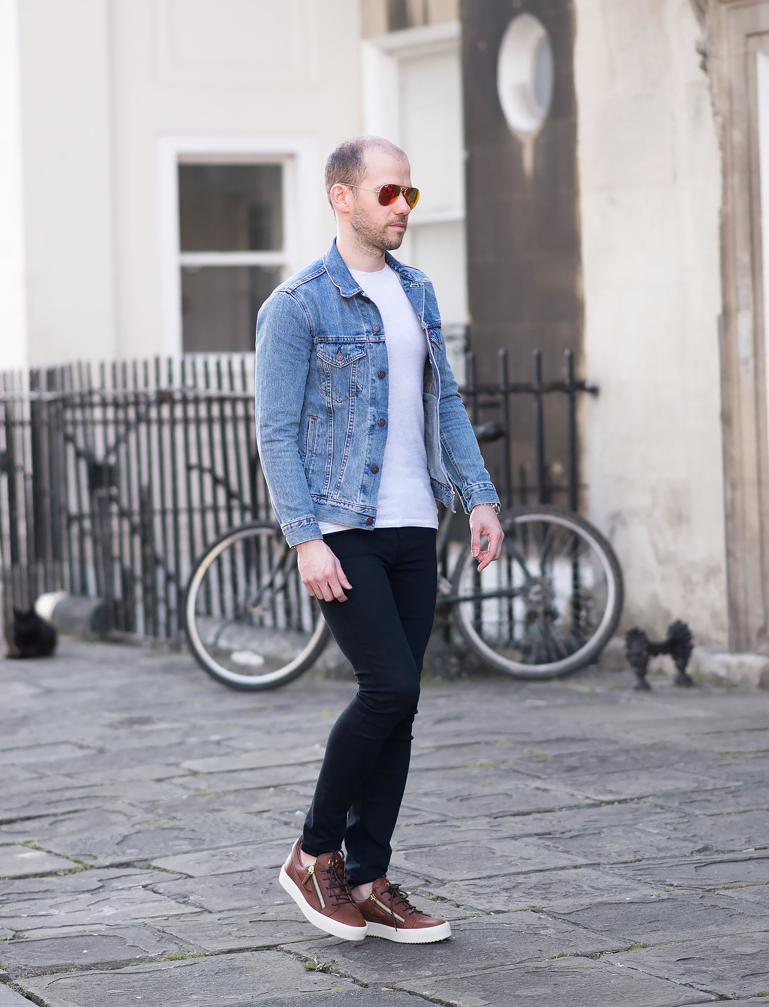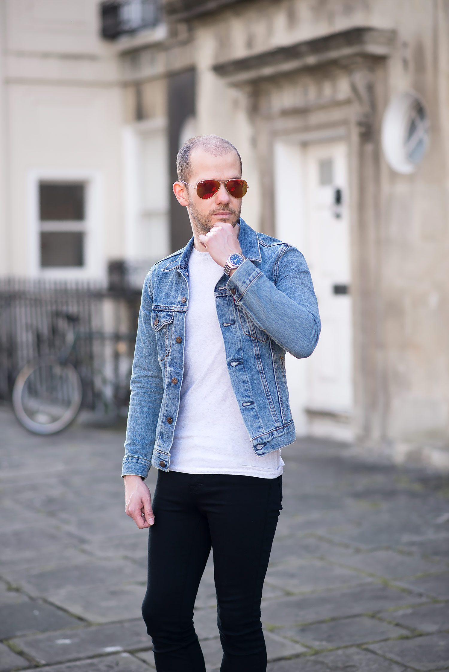 The jacket in question is my Levis Icy Trucker Denim Jacket which has been a firm favourite since its purchase and featured regularly in many of my outfit choices. The black jeans are a brand new acquisition – The J Brand Maria High Rise Skinny Jeans In Seriously Black. The Maria cut is my favourite pair from J Brand, previously wearing the Dove Grey version multiple times. Fortunately they fit equally as good with the super stretchy composition I’ve came to love. They do falter slightly at the last hurdle, the inseam is quite long, in fact almost 2 inches longer than the grey pair! Luckily as they are a solid black, turning up the hem is a simple affair and not at all noticeable. Still a highly recommended pair of women’s skinny jeans for men! Finally I wore a pair of Ray-Ban Aviators to finish off the outfit on my mens fashion blog. Big fan of their shape and style!