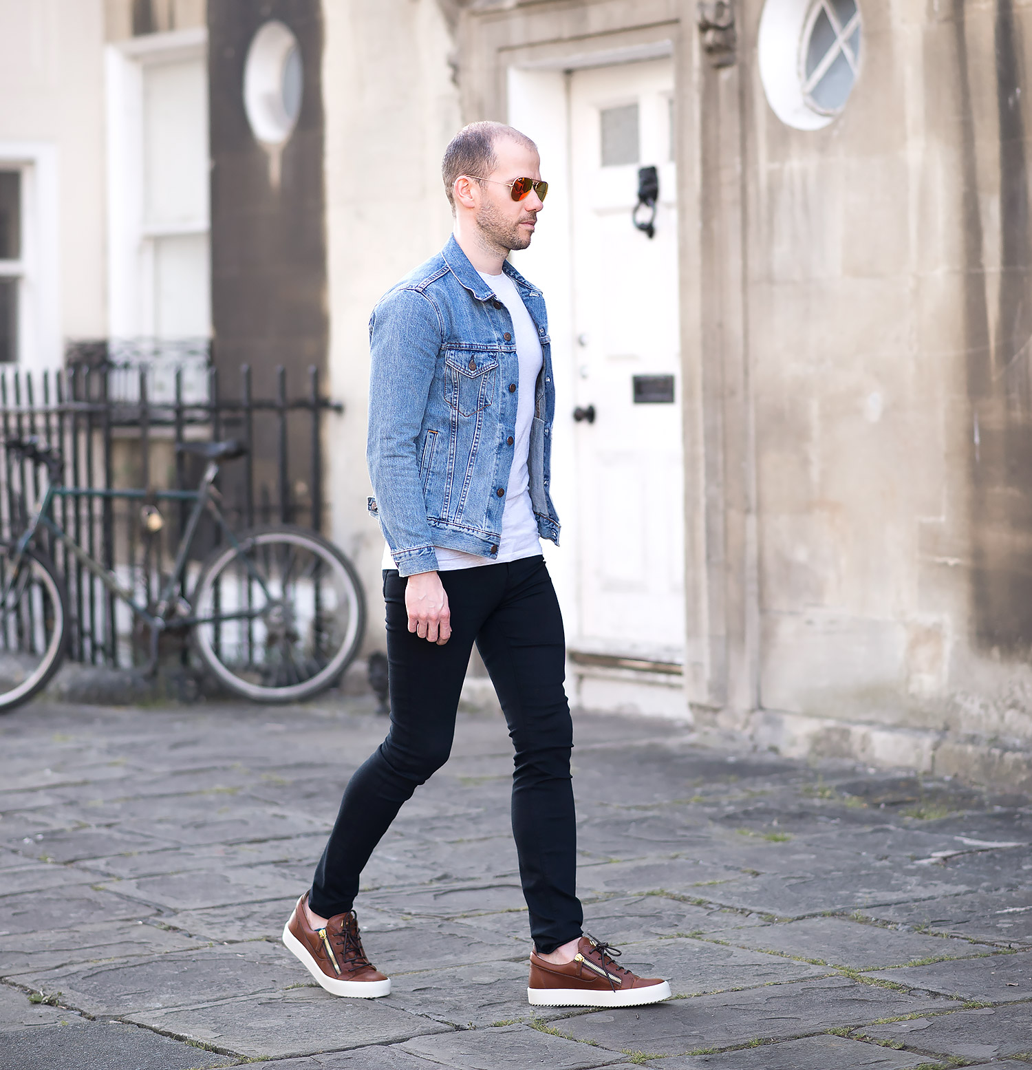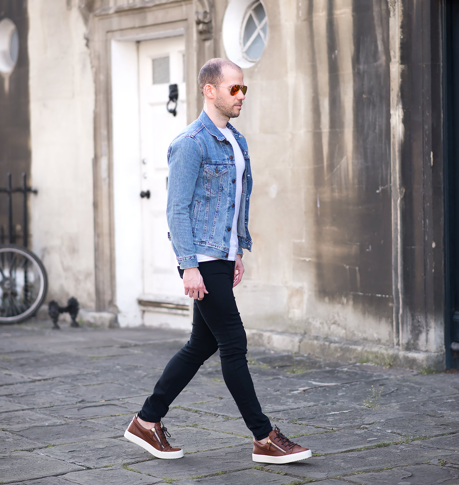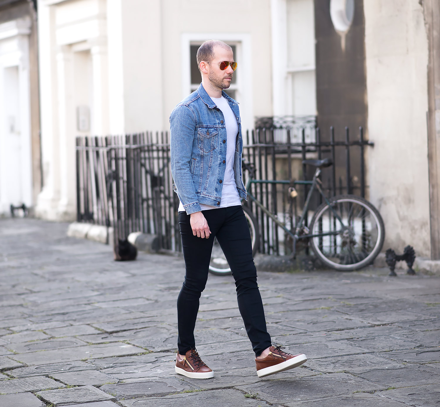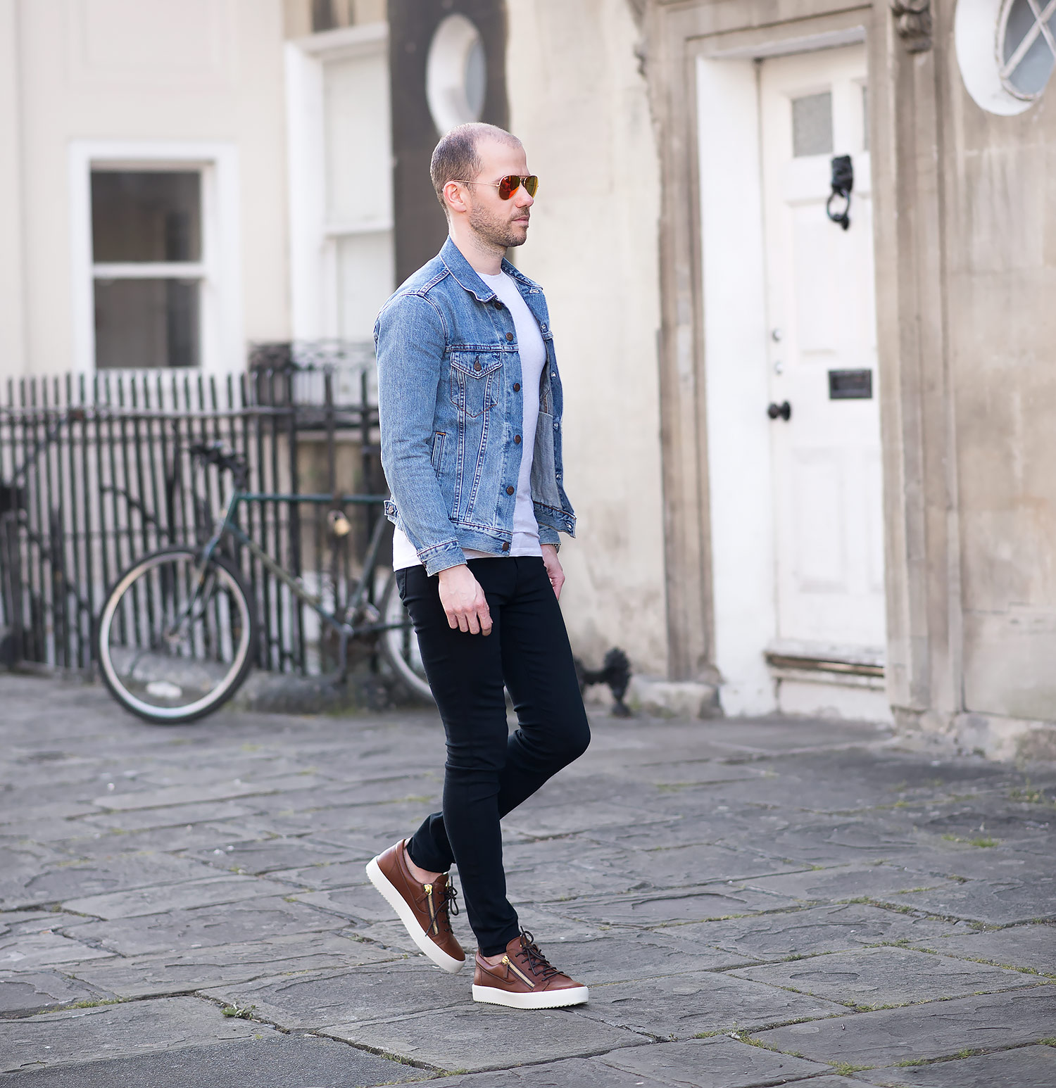 The jacket in question is my Levis Icy Trucker Denim Jacket which has been a firm favourite since its purchase and featured regularly in many of my outfit choices. The black jeans are a brand new acquisition – The J Brand Maria High Rise Skinny Jeans In Seriously Black. The Maria cut is my favourite pair from J Brand, previously wearing the Dove Grey version multiple times. Fortunately they fit equally as good with the super stretchy composition I’ve came to love. They do falter slightly at the last hurdle, the inseam is quite long, in fact almost 2 inches longer than the grey pair! Luckily as they are a solid black, turning up the hem is a simple affair and not at all noticeable. Still a highly recommended pair of women’s skinny jeans for men! Finally I wore a pair of Ray-Ban Aviators to finish off the outfit on my mens fashion blog. Big fan of their shape and style!