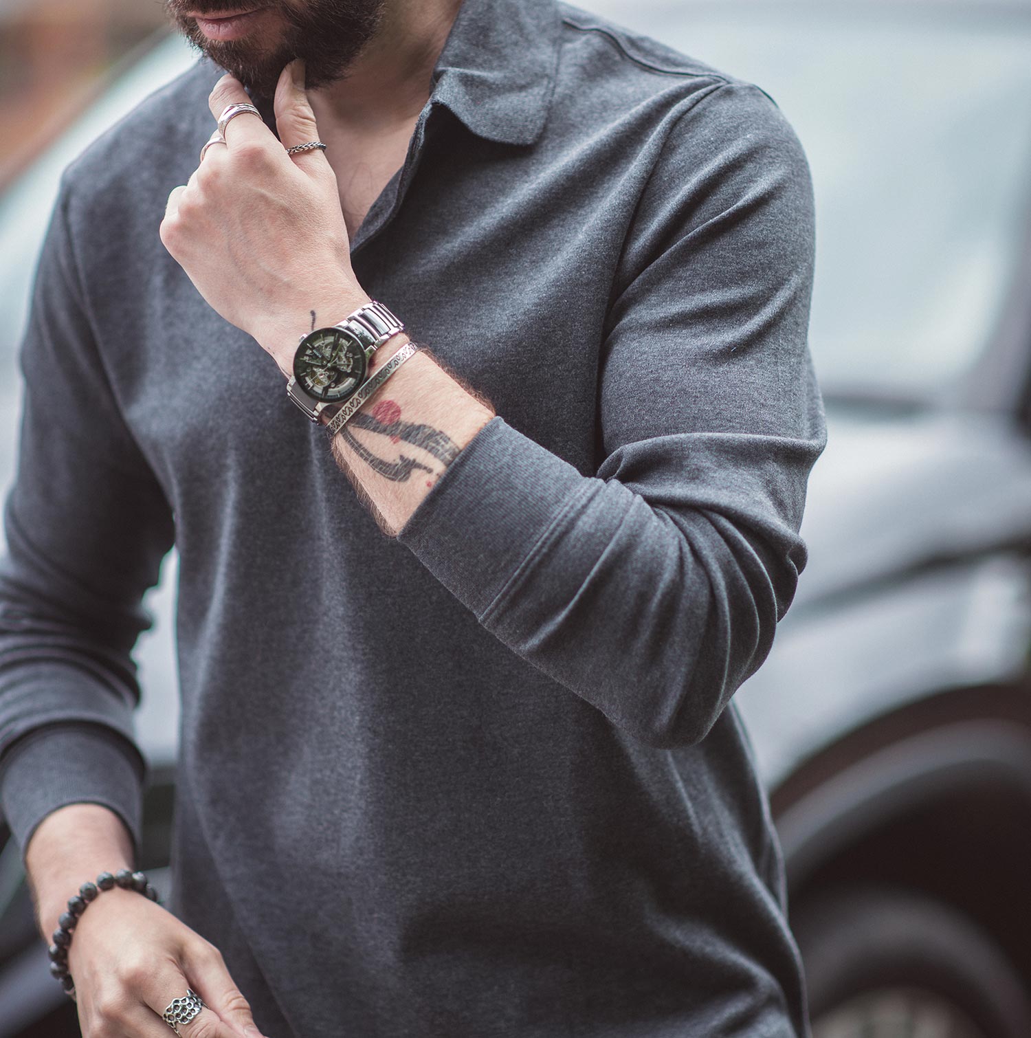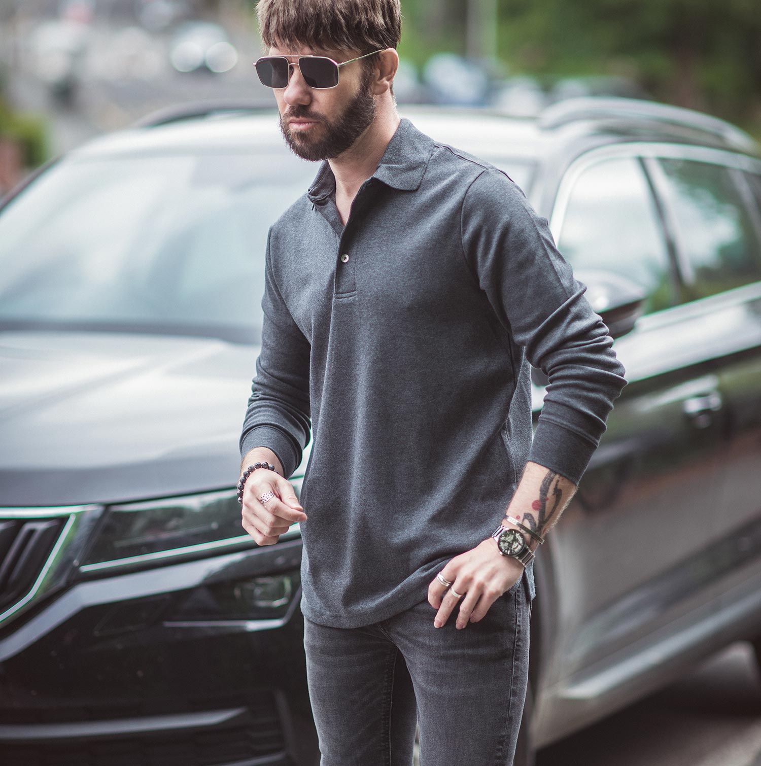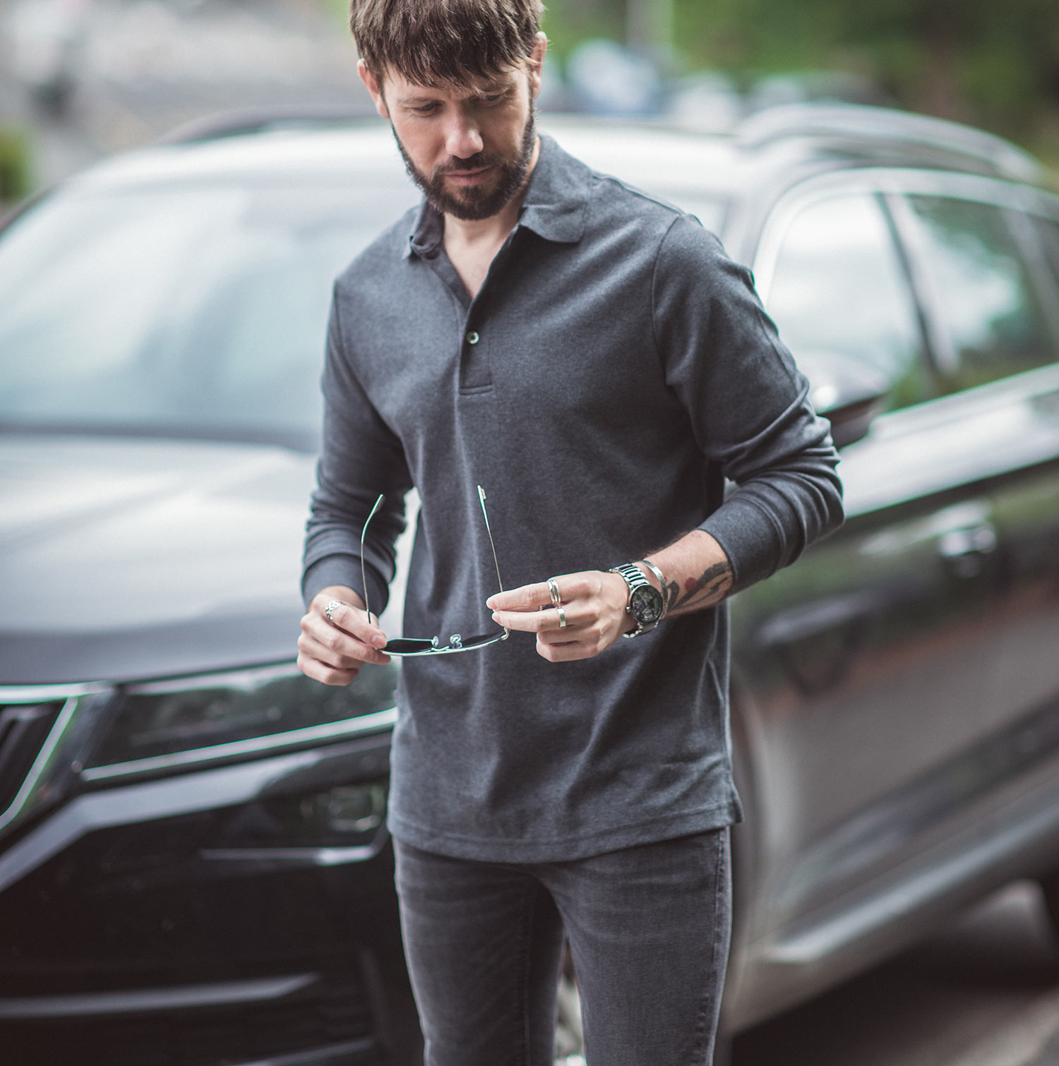 This polo shirt style can happily be worn as a dress shirt, paired with smart trousers or plain dark denim, or maybe worn under a blazer if you want to go full-dapper! Alternatively, you can dress it casually with distressed light denim and boots (Chelsea boots would be my go-to choice!).