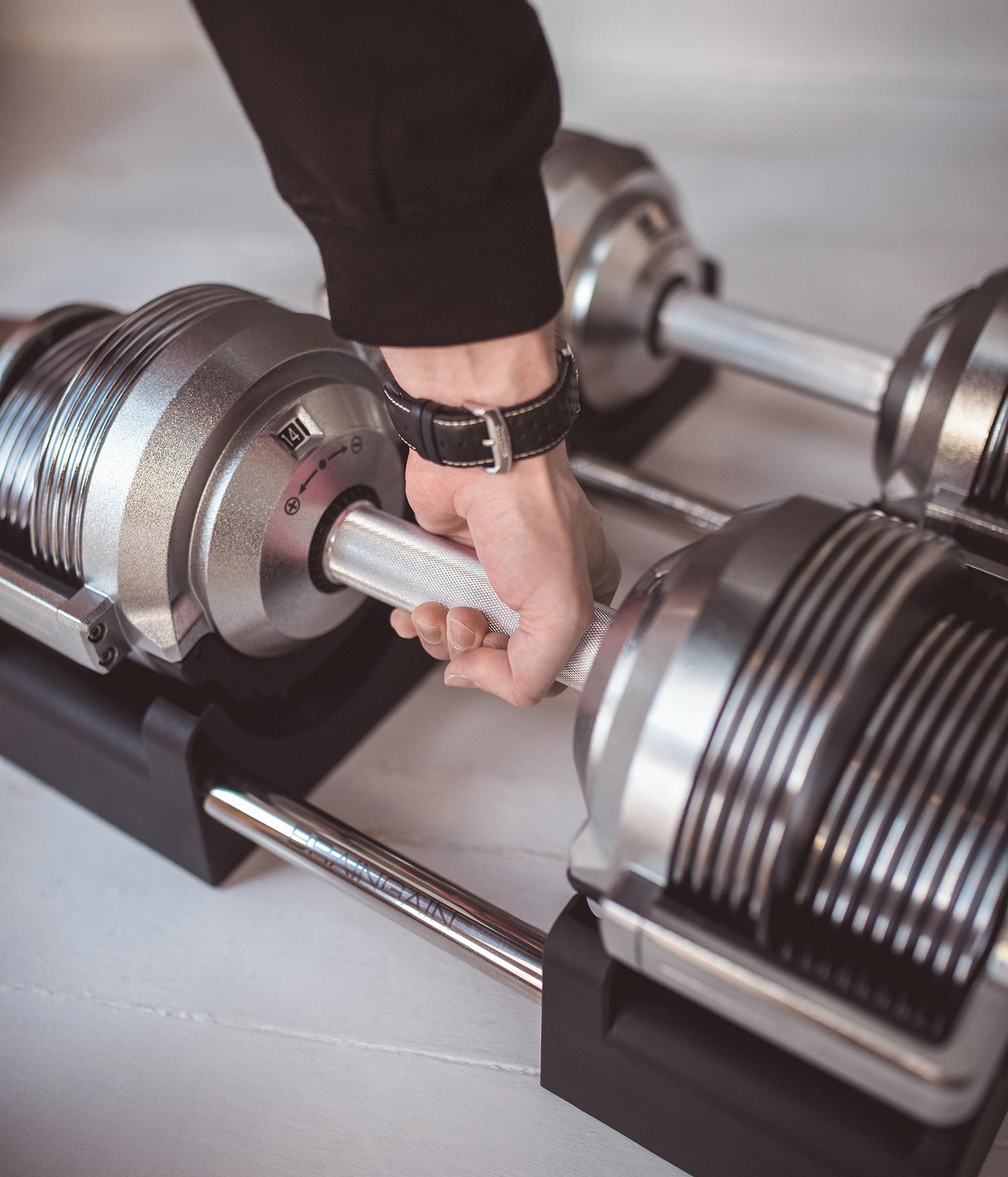 The model I selected allows you to choose from 2KG all the way up to 32KG for each dumbbell, going up in 1KG increments to allow you to increase your weight a little each time (rather than a big jump, which many other brands force you to do with their plate sizes). You can easily carry the casing (with a dumbbell sitting inside) and place it out of the way when not in use (handy bars on each side of the unit for easy lifting).