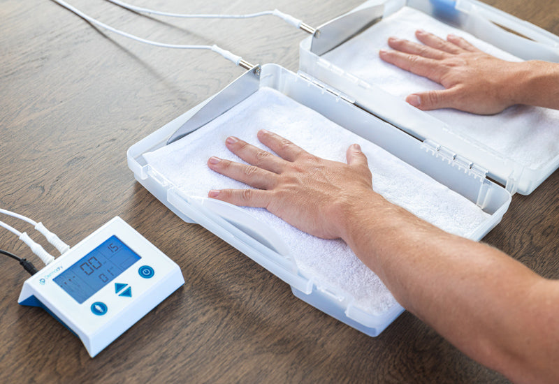 Antiperspirants just generally don’t work for those who sweat excessively. And chances are, sufferers have already tried everything that’s available in-store. We offer a cost-effective, non-invasive, needle-free, and drug-free way to treat the condition. Our home-use device means you can get treatment from the comfort of your home, and our treatments adapt to your schedule, so you can do them anytime, anywhere. We offer free international express shipping, so there’s no need for any additional expenses, travel time, or clinic visits!