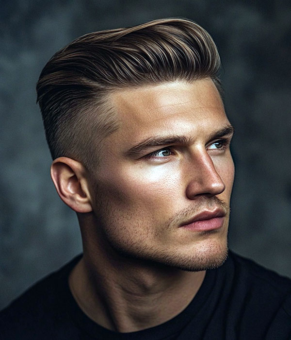 Do you aspire to achieve an old-school gentlemen’s style of cut (or even Ivy League)? Then consider a side part with a taper fade. A hard side part will transition between short hair along the sides and longer hair on top combed over and back for a sophisticated end result.