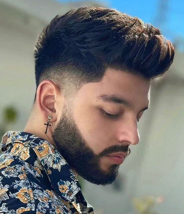 For something truly special, why not consider a blowout taper? This style features a gravity-defying height with asymmetrical flow, culminating in a quiff at the hairline. Thick, naturally straight or slightly wavy hair is the best option for this style, as it heavily needs expert laying and texture to achieve that level of volume and height.