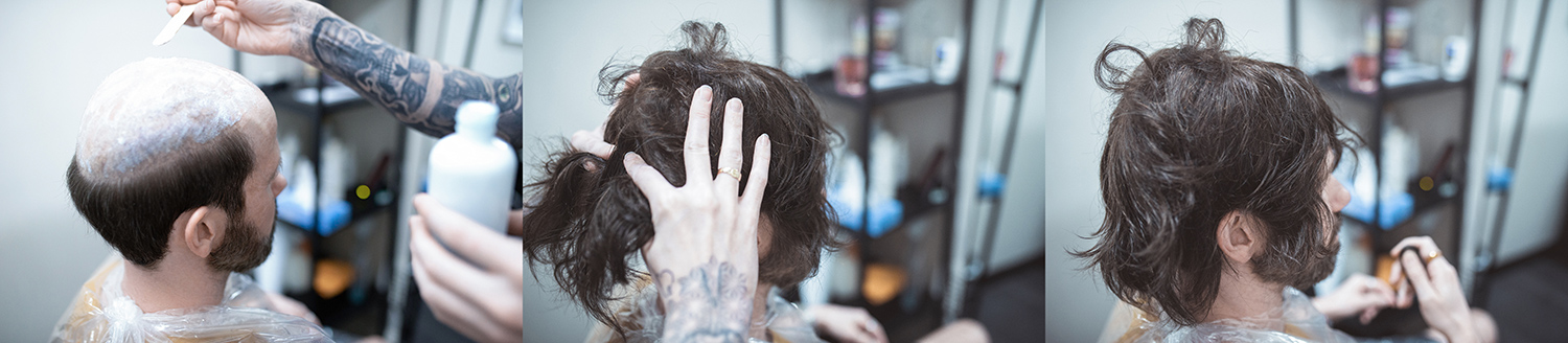 The hair on the unit arrives long, allowing it to be trimmed to your individual preference. After the installation, the next step is for your chosen stylist (in this case, Dale) to cut and style your new hair to your desired look.