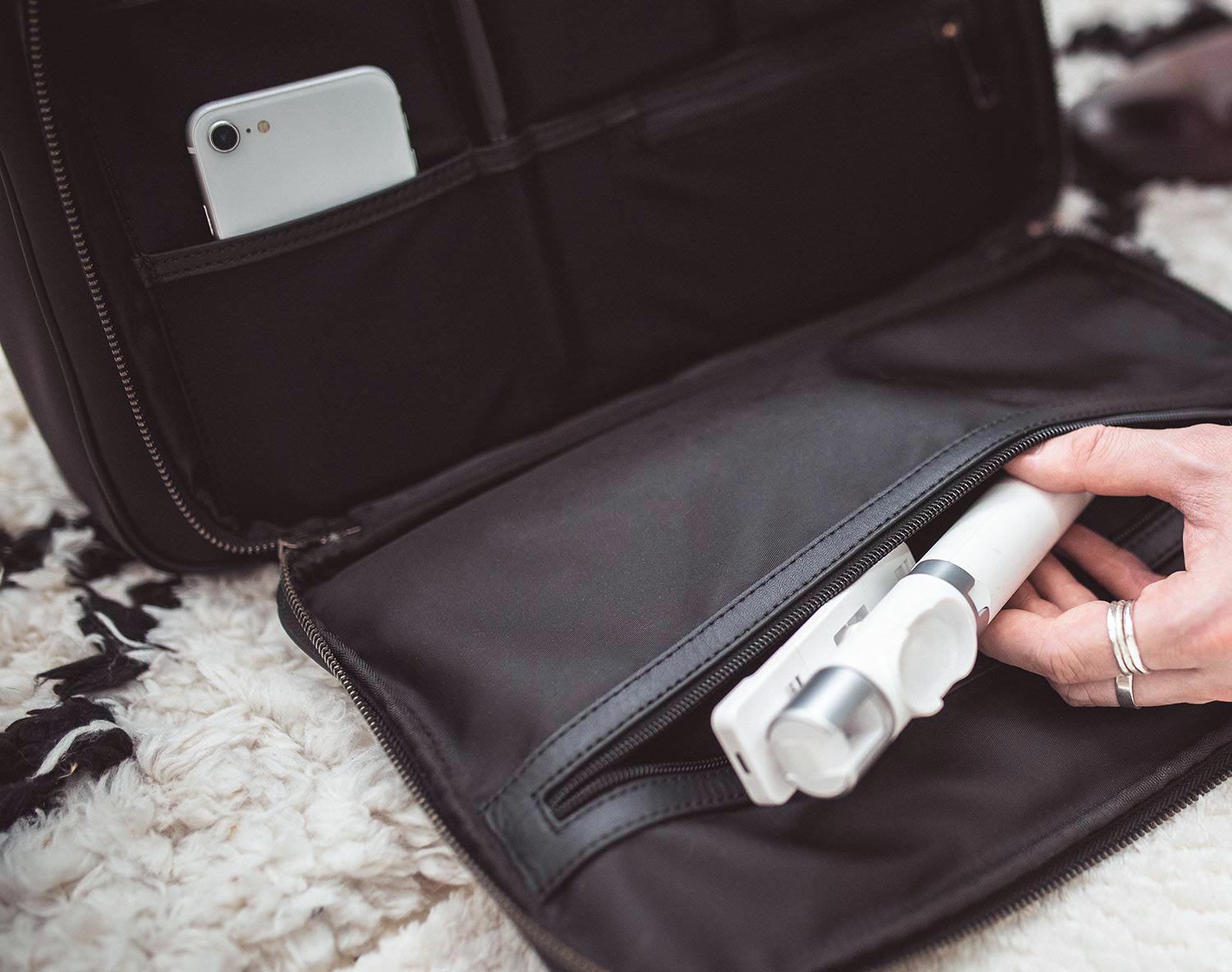 No matter your profession, your smartphone is invaluable (even to the point of booking your trip/tickets), so storing this inside your luggage is vital. However, ensure you can reach it quickly – ideally, slip your phone into a handy sleeve or an outer closable pocket.
