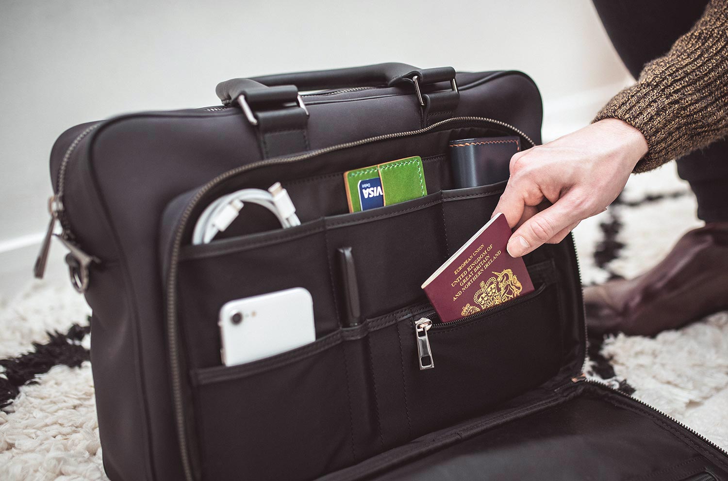 Depending on where you are headed (perhaps your choice is across the sea), don’t forget your passport; otherwise, you won’t be going anywhere! Pack your personal identification inside your briefcase, secured within one of the many available internal sleeves.