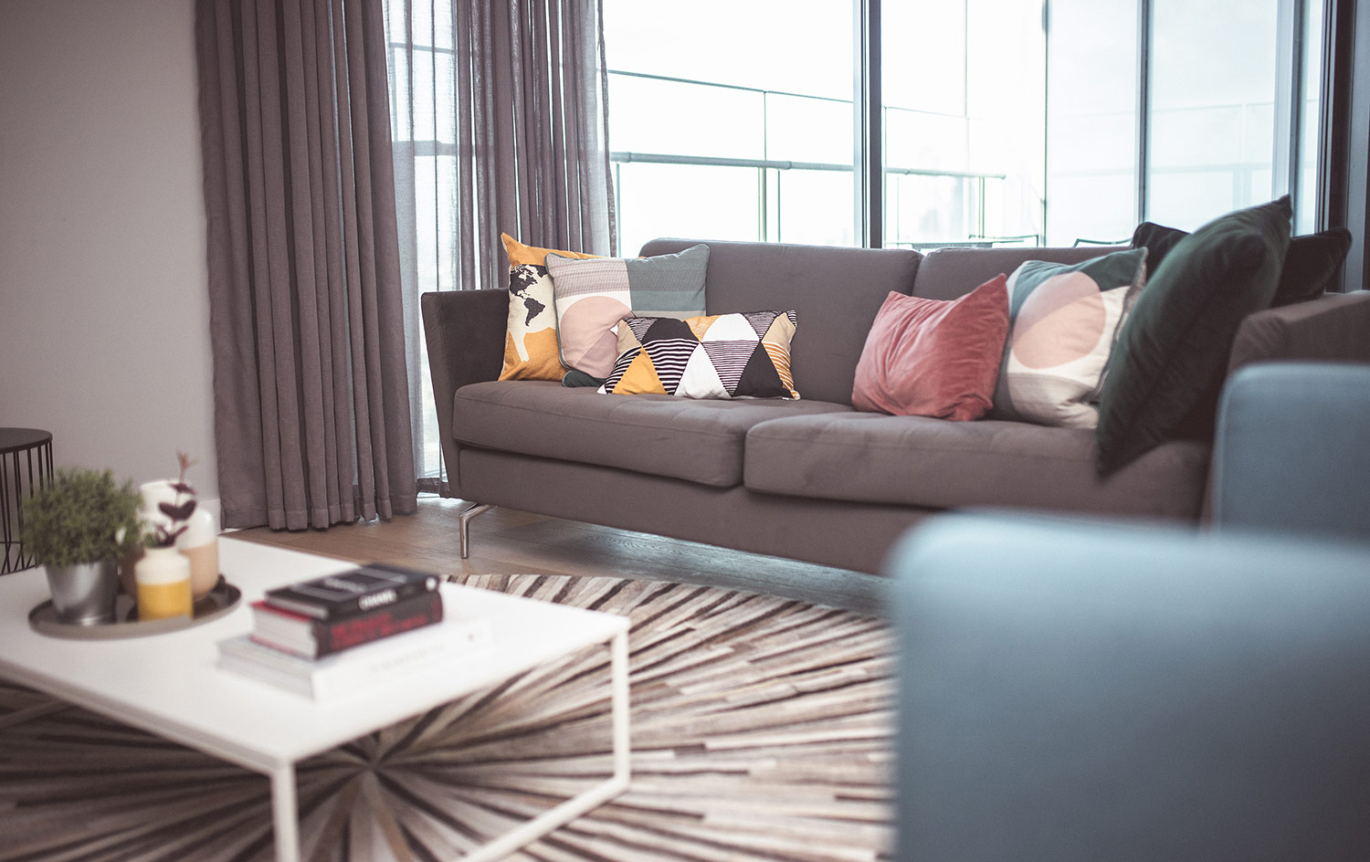 The apartment was on one of the highest floors (a staggering 43rd floor!), but once up their this allowed the balcony view to be breathtaking – you could view the city for miles (the wheel, especially at night was beautiful to see!). Each of the rooms was beautifully furnished with a mix of muted tones and popping colours. Fully functioning appliances as to expected, with the washing machine hidden away in a cupboard. Additionally, loved the retro style radio!