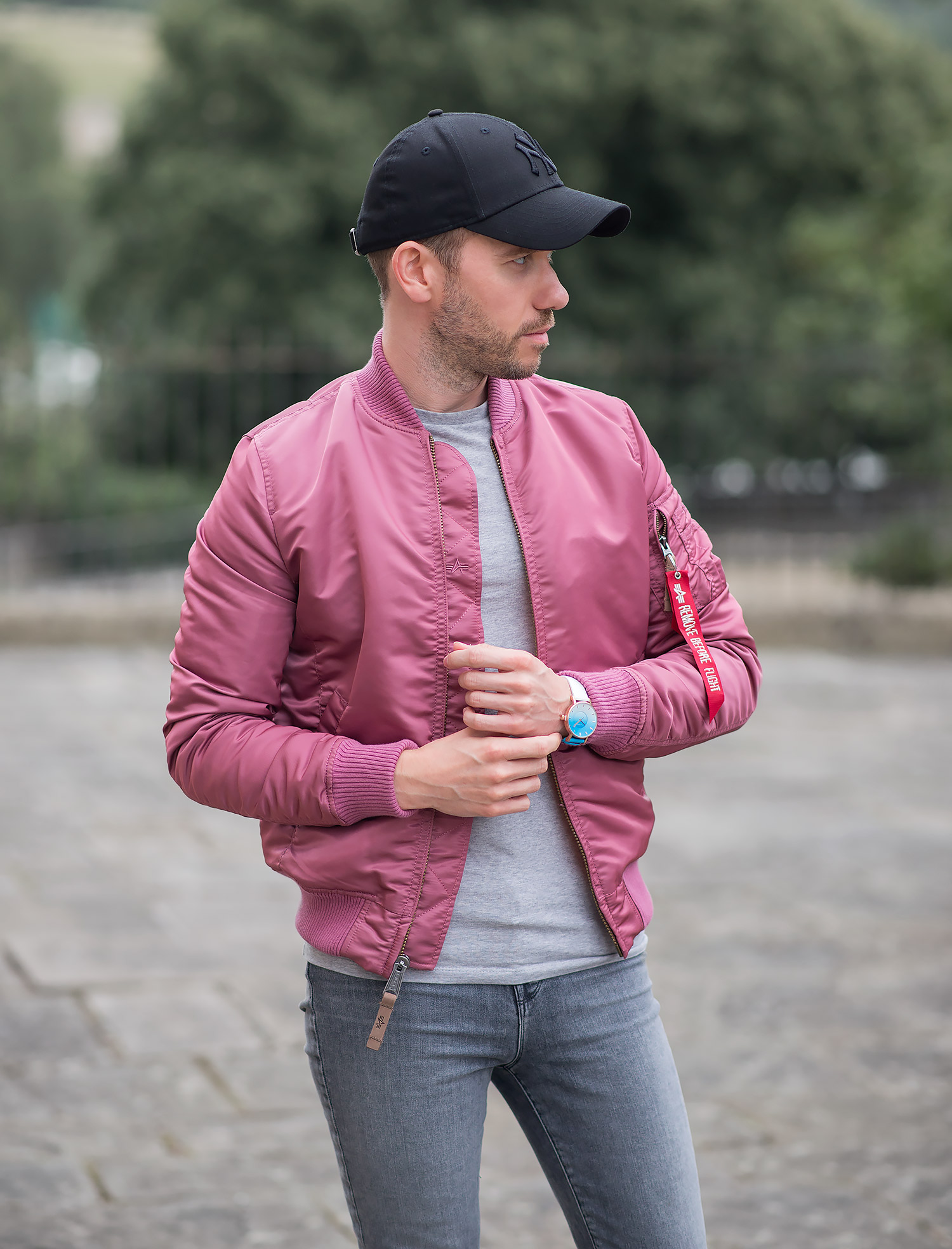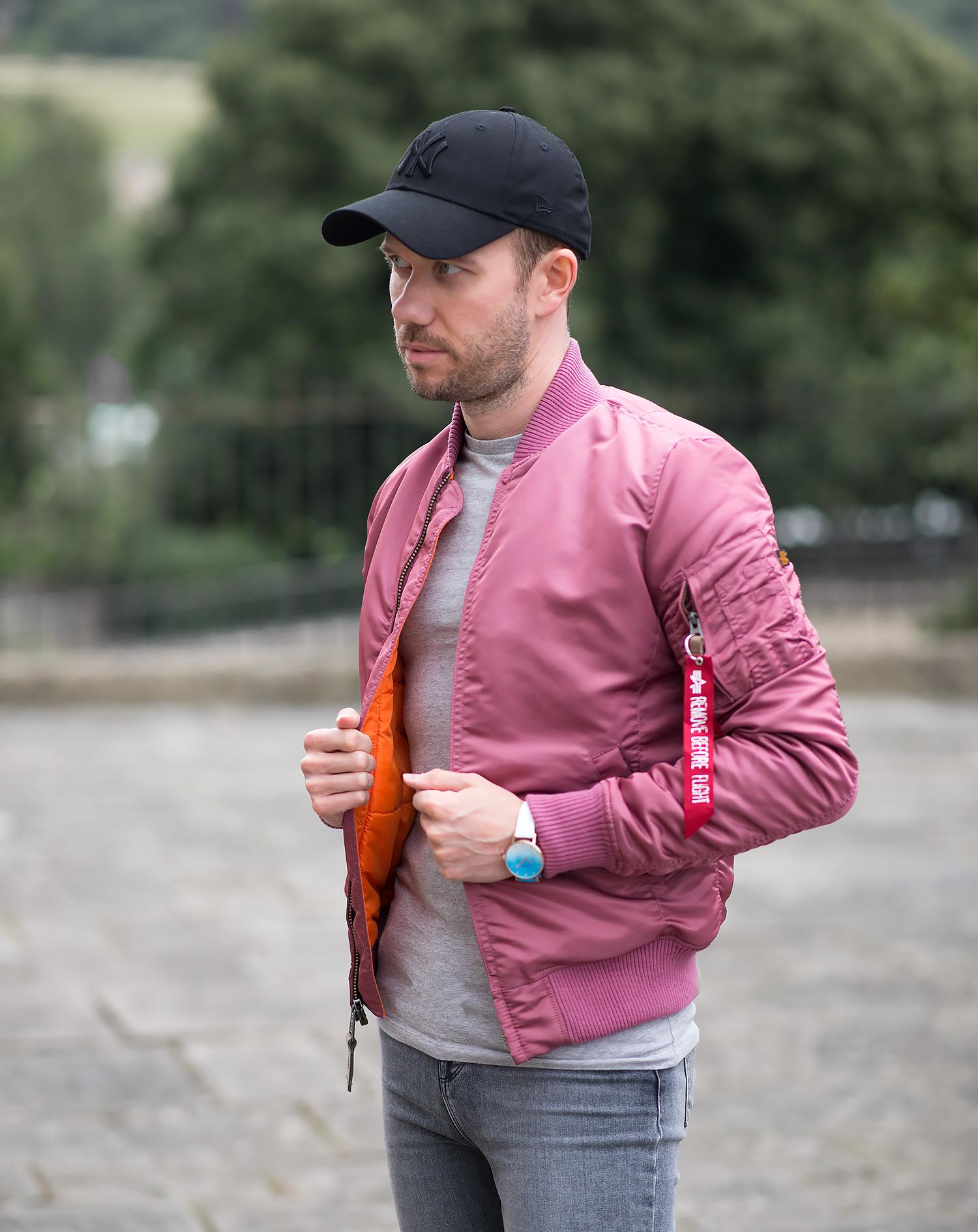 As regular readers will know, I’m a massive fan of bomber jackets! Fortunately they are going through a popular phase in the fashion industry, so there is a huge selection of different colours available. If you can think of a colour, then someone somewhere has created a bomber jacket in that particular shade! Which leads nicely to the star of my latest outfit post – The Alpha Industries Dusty Pink Bomber Jacket.