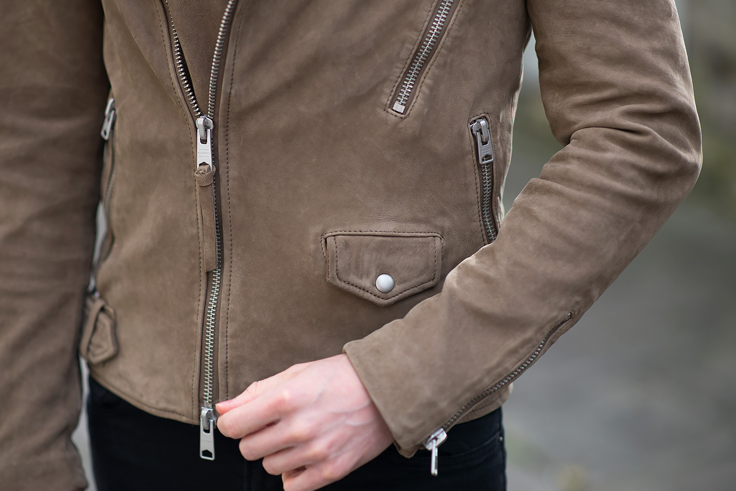 Allsaints Jennings Khaki Brown Suede Biker Jacket Review