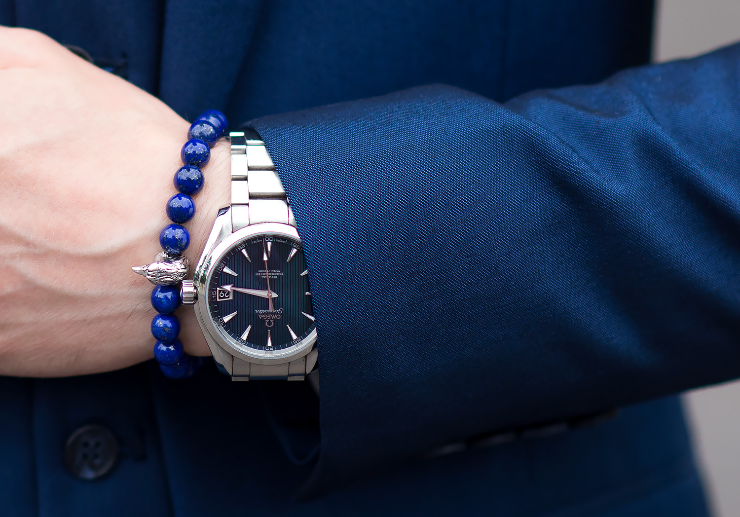 Finally I wore a new accessory item – Atolyestone Lapis Lazuli Eagle Beaded Bracelet. It boasts a stunning blue colour with hints of purple which have a deep almost mesmerising effect as you gaze into them. Its shade complemented the rest of my outfit perfectly! The bracelet also features an eagles head crafted from solid silver, adding a touch of uniqueness to the design. The brand – is located in London on Regent Street, shared with some of the highest level jewellery makers in the world. The quality of this piece continues this tradition, expertly created without even the smallest hint of flaws. The bracelet slips on smoothly (they offer each piece in a selection of sizes) and is incredibly comfortable. It certainly livens up any outfit and sits comfortably next to a watch (such as my ever reliable Omega Aqua Terra Seamaster) or other pieces of jewellery. Atolyestone have a huge range of products available, so many in fact I was actually spoilt for choice! But my love of purple was the final deciding factor.