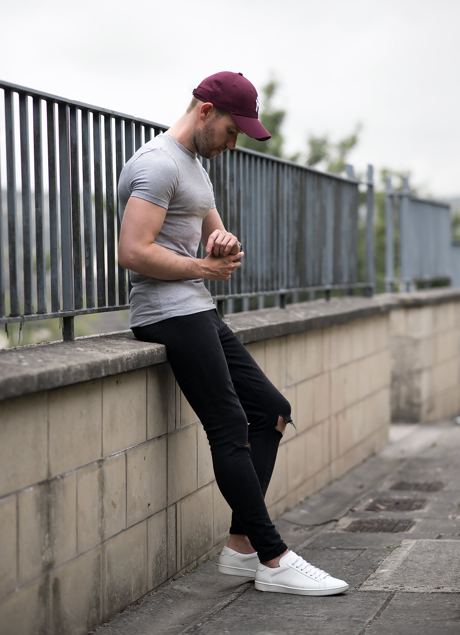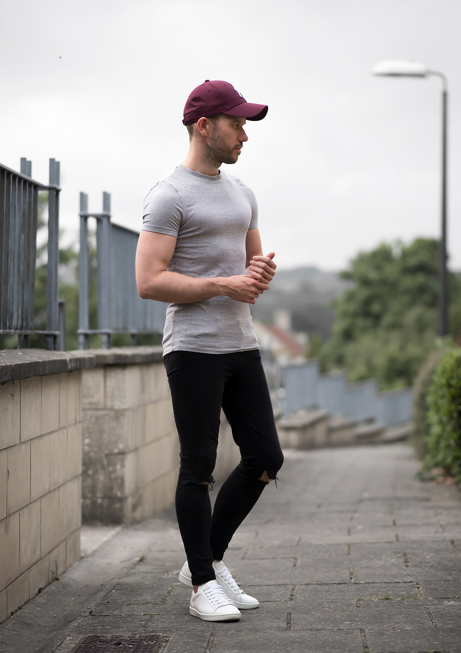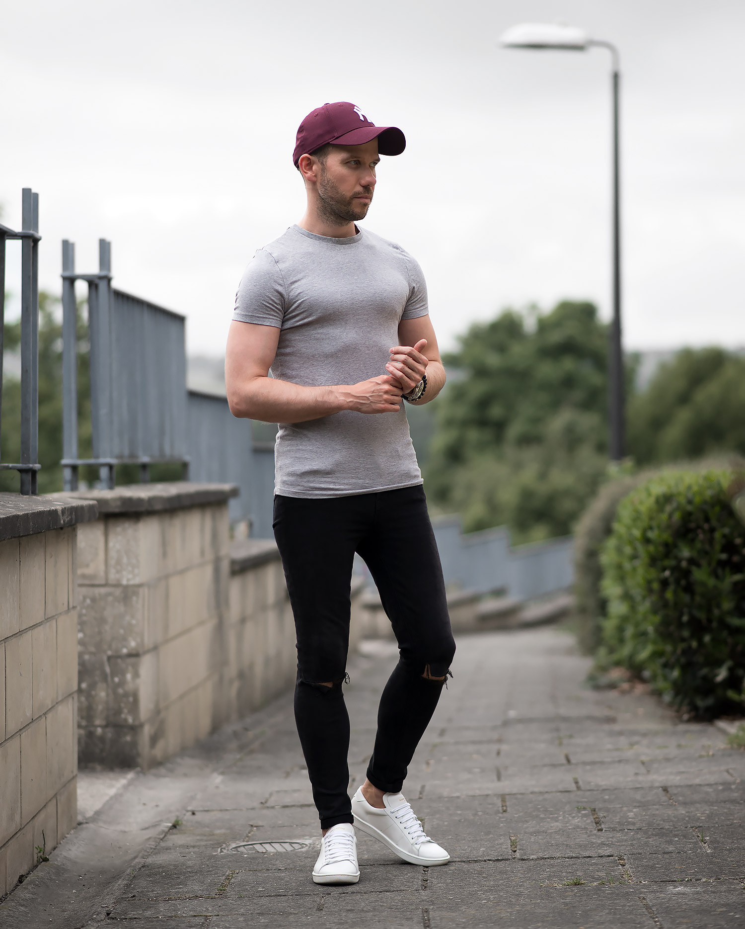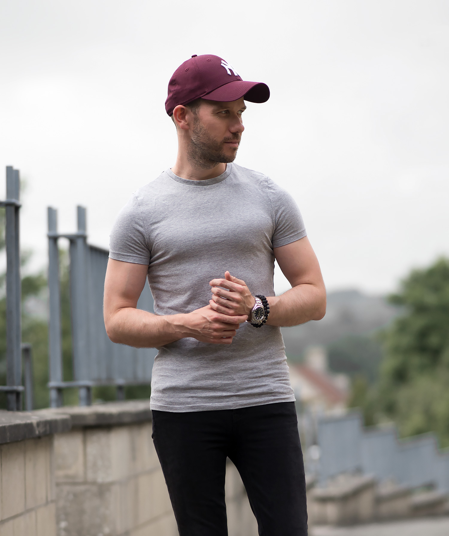 It doesn’t get much more basic than a plain T shirt, skinny jeans and a pair of sneakers (not forgetting my baseball cap!). As previously mentioned there was very little effort and decision making involved, except for a minor transgression involving my choice of jeans! I also opted to include my Skeleton HD bracelets (reviewed here) to add something extra to the casual style. My choice of jeans were my ever dependable , which I’ve spent an inordinate amount of time wearing recently (As they are women’s skinny jeans, they are just so comfortable!). I teamed the denim with an and my beloved (check out my review). Despite all odds, I initially decided against wearing one of my many hats! However, it wasn’t to be, I spotted my Fiancee’s amazing she recently procured from Urban Outfitters, with a little negotiating I managed to borrow it on this occasion! The pop of colour completed the outfit off nicely.