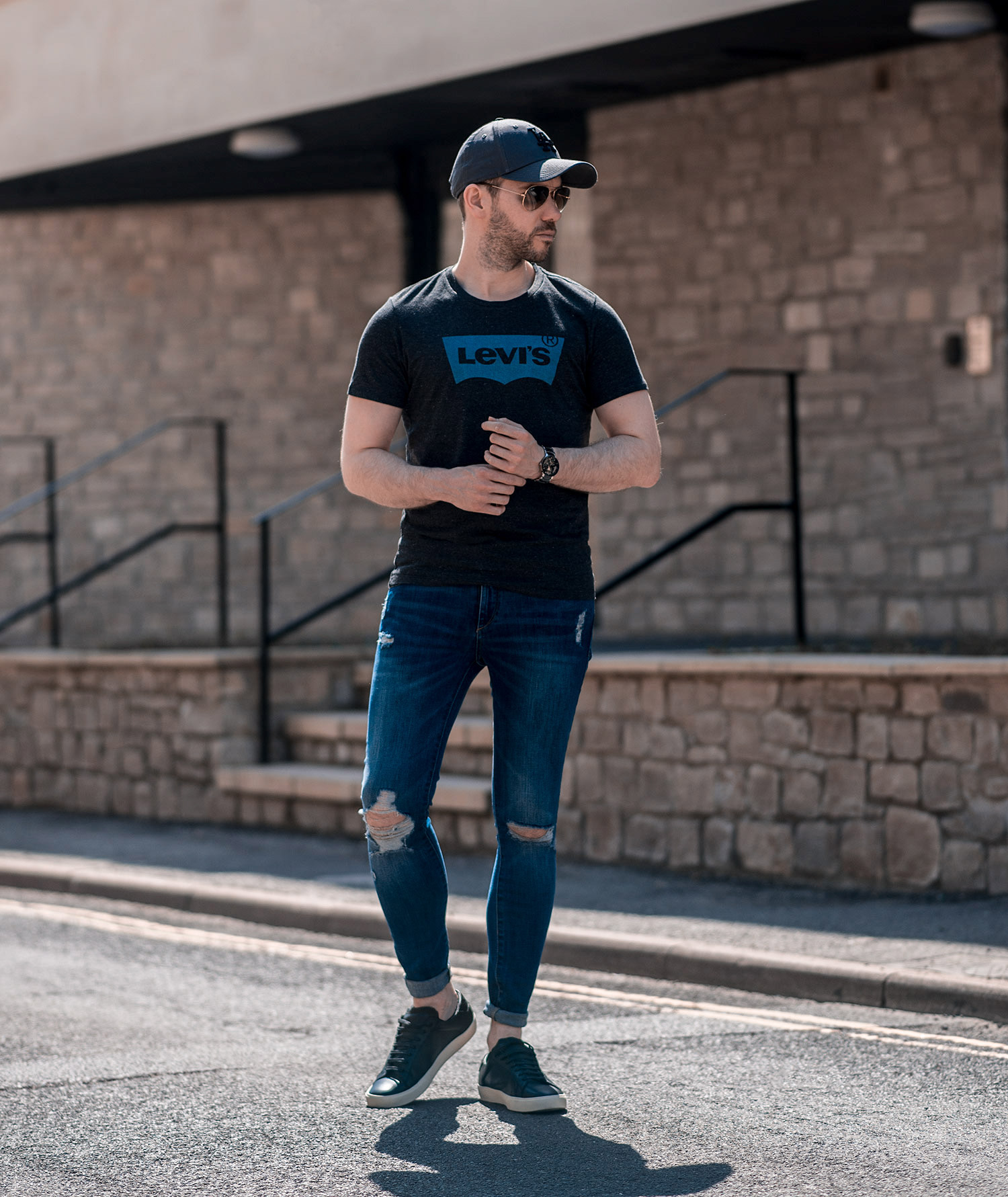 The weather has allowed me the chance to wear my latest wardrobe addition – Levi’s Housemark Tee in Dark Phantom Tri-blend. This was my very first none denim purchase from the world famous jeans brand. I had no prior expectations of how it would fit, yet once I tried on the T-Shirt I was pleasantly surprised! Nice and slim with a lovely soft touch fabric, I will definitely be looking at adding the classic white variant to my collection.
