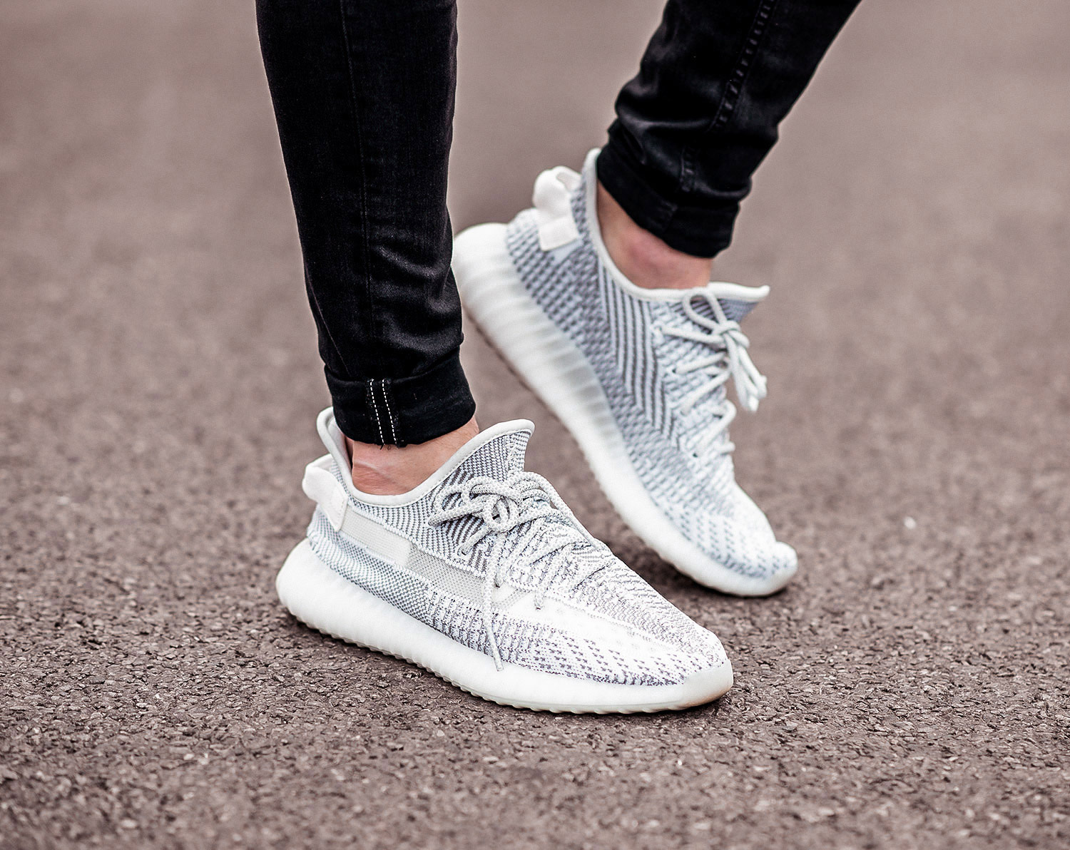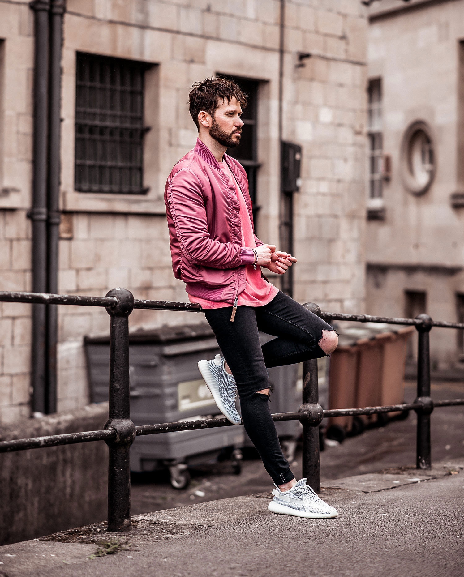 Pairing against the jacket and shirts bold pop of colour, I decided on some dark denim with my GRLFRND Black Skinny Jeans with knee rips (recently dethroned as my favourites by a plain washed black pair, yet they are still a key piece in my wardrobe). Adidas Yeezy Static Sneakers were the ideal choice of shoes to match with the overall urban look I was portraying with the rest of my outfit. I am currently looking forward to the new styles that have been teased in the coming year.