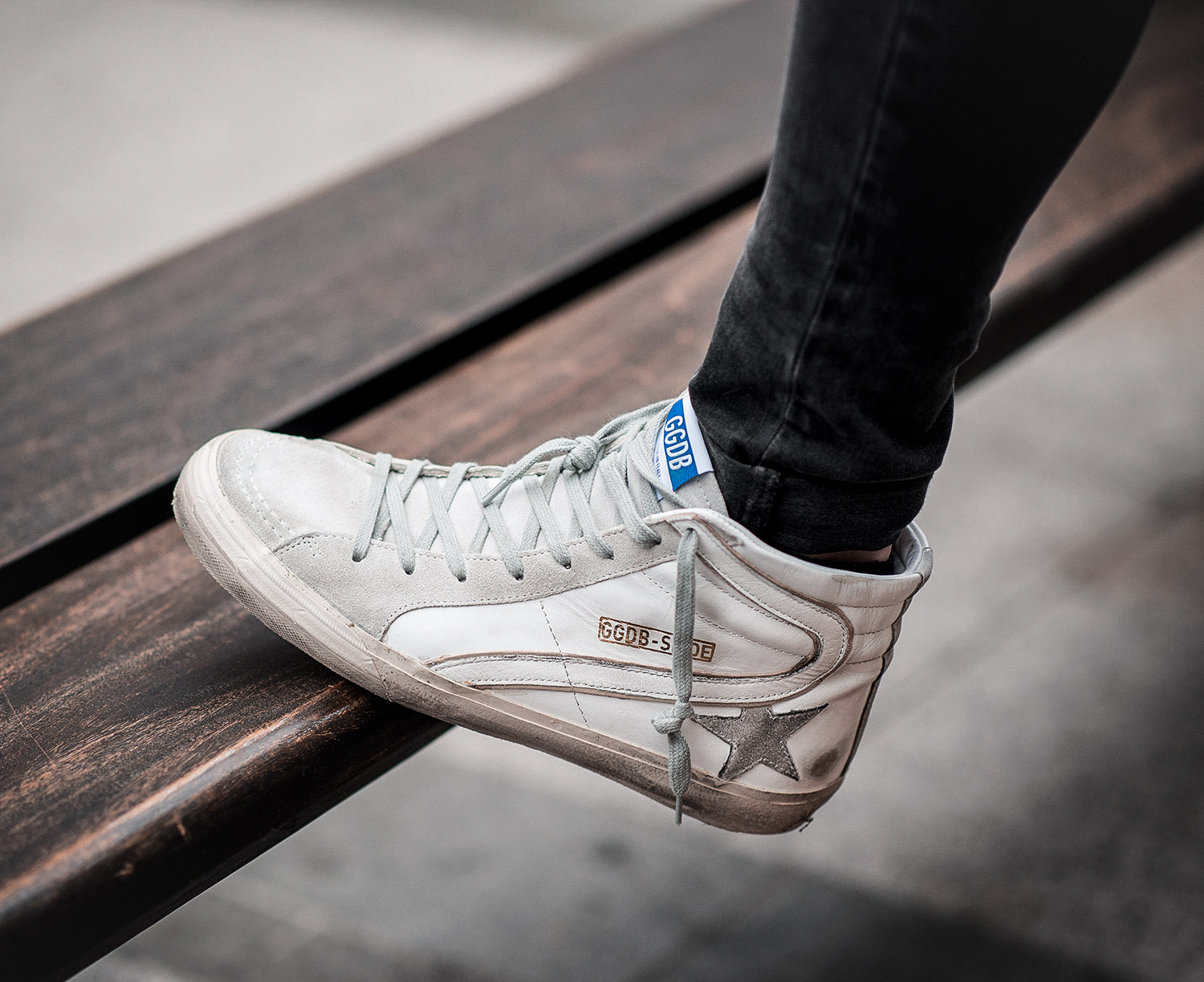 I chose my Levi’s Grey Cord Sherpa Jacket as my outerwear choice because of its warm lining, regular readers may recognise that I featured its tan brother in my earlier Levi’s Sherpa Cord Trucker Jacket Outfit post. I’ve actually owned this version for a few months now, but regrettably an opportunity to wear it never presented itself till now (and again, it is hardly visible, folded and mostly hidden slung under my arm!). My choice of denim was my James Jeans faded black pair, which also doubles up as decent travelling clothing. I wore my Levi’s Charcoal T-Shirt with contrasting blue logo printed on the chest (worn in previously in its own Charcoal Grey Levi’s T-Shirt Summer Outfit post). Finally, we have the shoes, which I am very excited about! It is one of the first wears of my brand new Golden Goose Slide Hightop Sneakers, I adore them! Keep an eye out for a future blog post review.