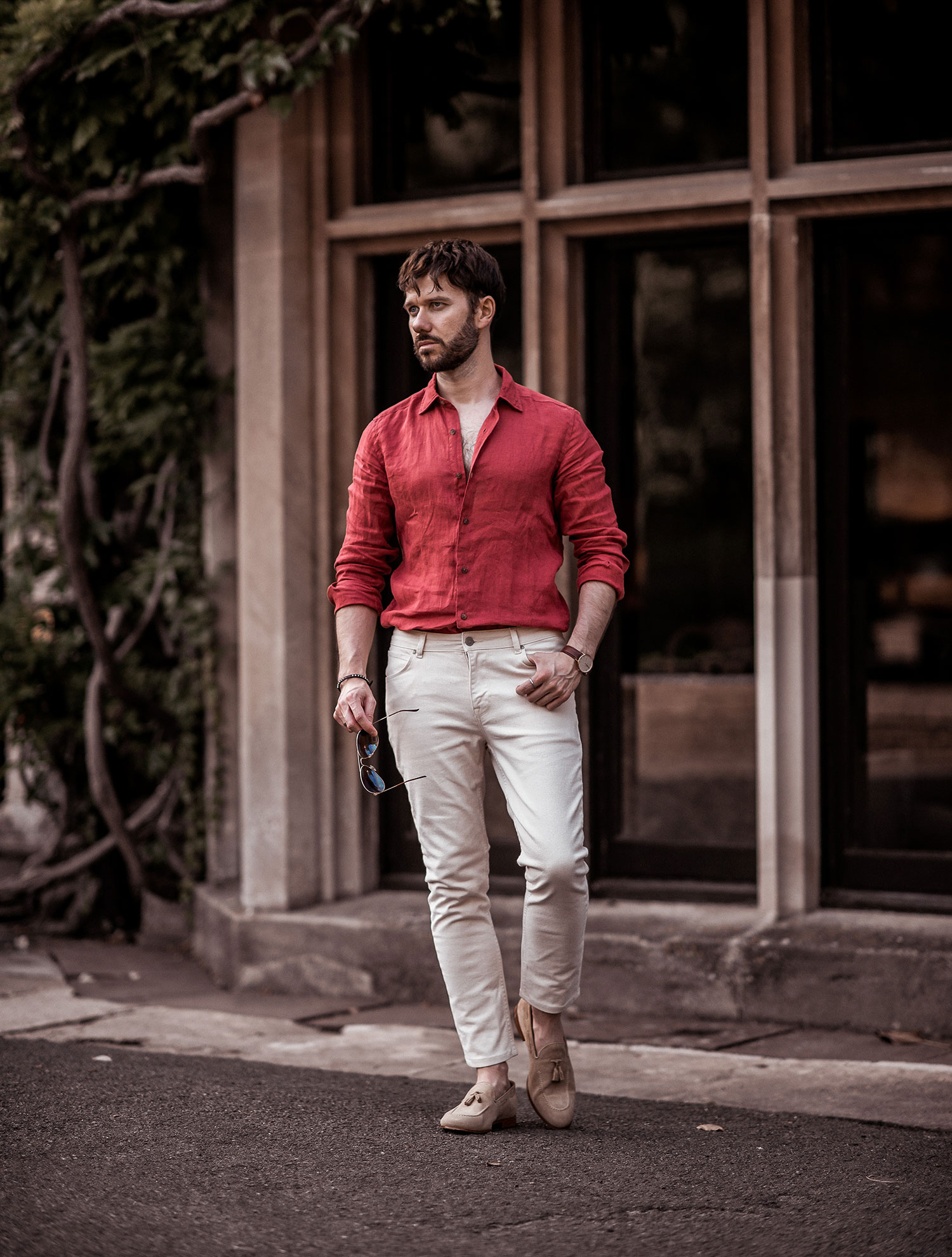 First up is a linen shirt from Massimo Dutti in bold red, it’s fabric perfect for those warm days (as mentioned in an earlier blog post, I value the brand’s high-quality shirt production). For leg wear, I opted for my ASOS ecru skinny jeans for a contrasting effect which still holds onto that summer vibe. Beige loafers were on the cards when it came to footwear, since purchasing these from the NoHow Italian online retail store I have worn them numerous times, definitely worth keeping an eye on their shoe collection (particularly if there is a sale or discount).