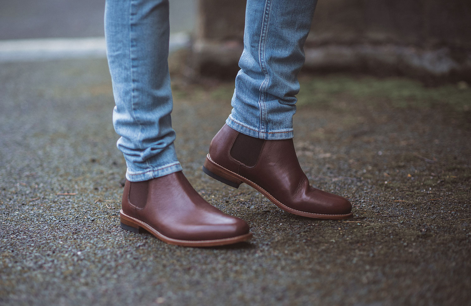 The Herring Ipswich II are a fantastic pair of Chelsea boots (as the name suggests, these are the follow-up to the hugely successful earlier model). They are available in a gorgeous waxy brown leather, as seen here (along with solid black), with a complementary darker gusset and a Goodyear Welted sole (to ensure quality construction, long life, and full repairability when necessary).
