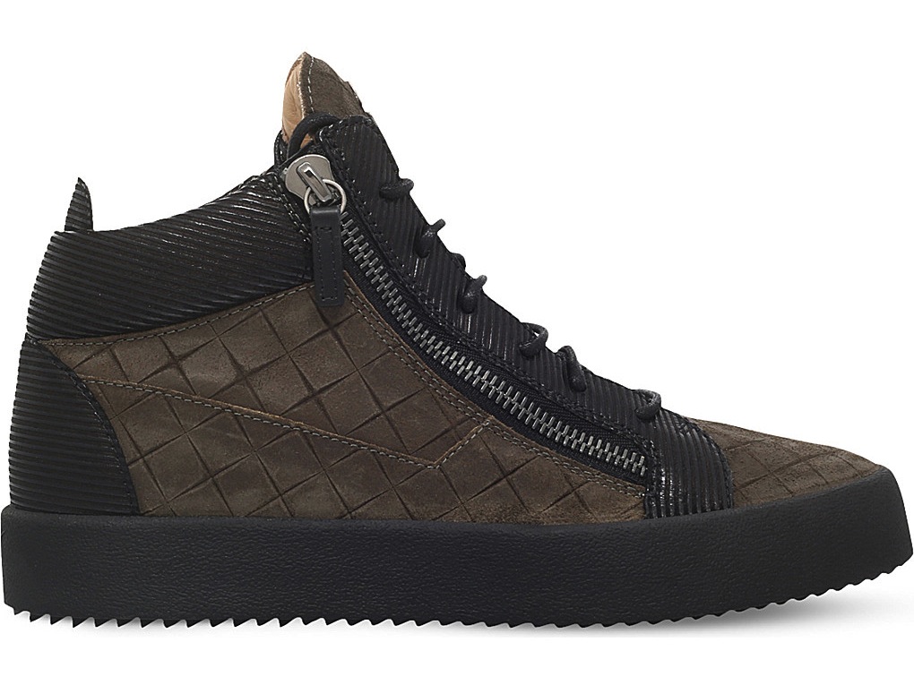 Featuring a large assortment of styles to choose from, differing heights such as high and low tops, along with a full range of colours, beginning with dark and muted shades all the way up to metallics and beyond. We of course have to mention Zanotti’s love of all manner of embezzlements, such as elaborate wings and his now iconic zippers, which are on almost every pair.