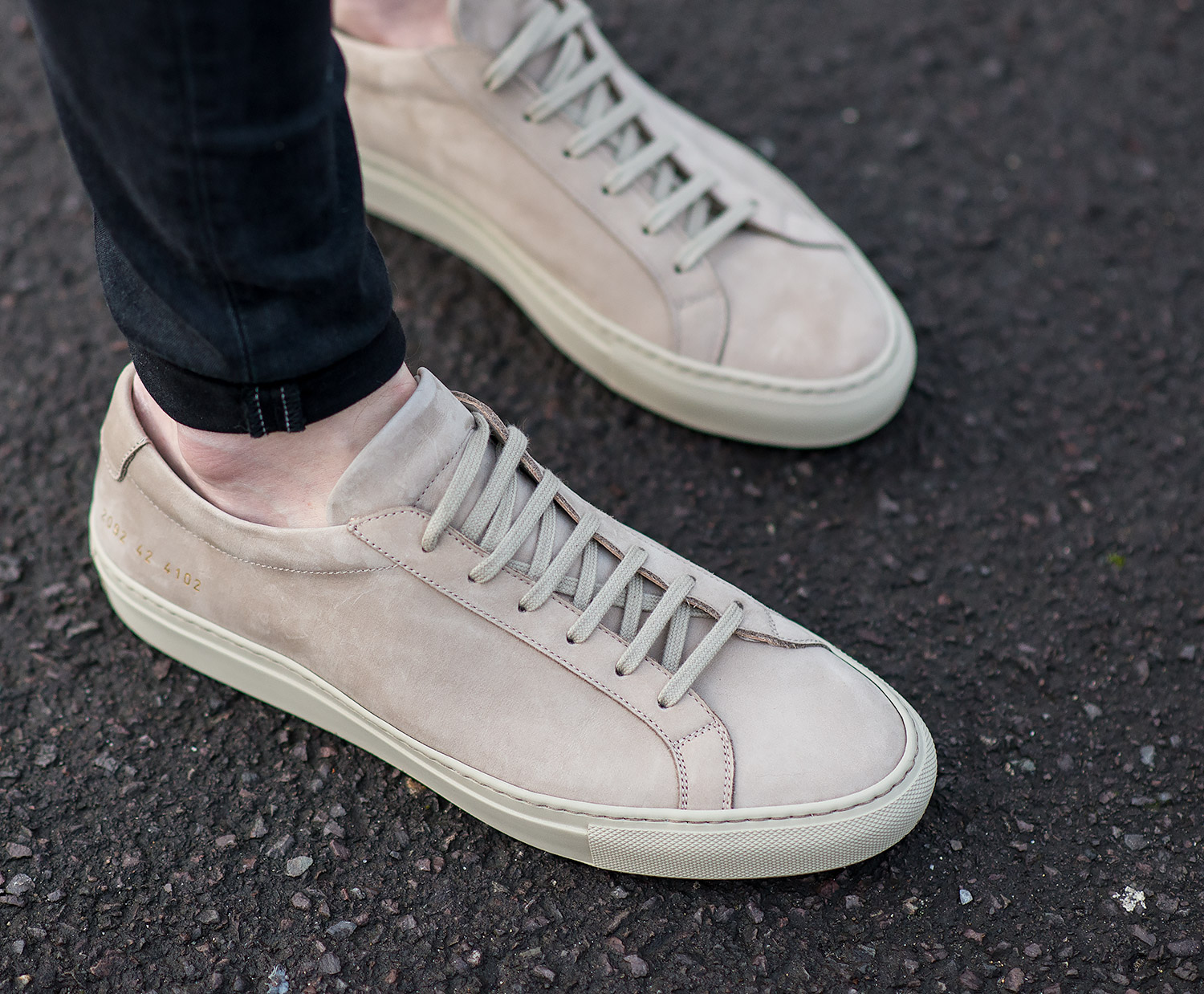 There is not a single doubt that the Common Projects Achilles shape is very desirable! Their worldwide popularity is a testament to how perfectly designed the shoe is. They are sleek without appearing too aerodynamic, yet still boasting a pointy shape than the more common round toe cap feature on many of its adversaries. Personally, I am drawn more to this sharp design, allowing an appealing outfit silhouette. Overall, ascetically, Common Projects are faultless, this model has been a brand winner for a long time, and I can see no reason to dispute that!