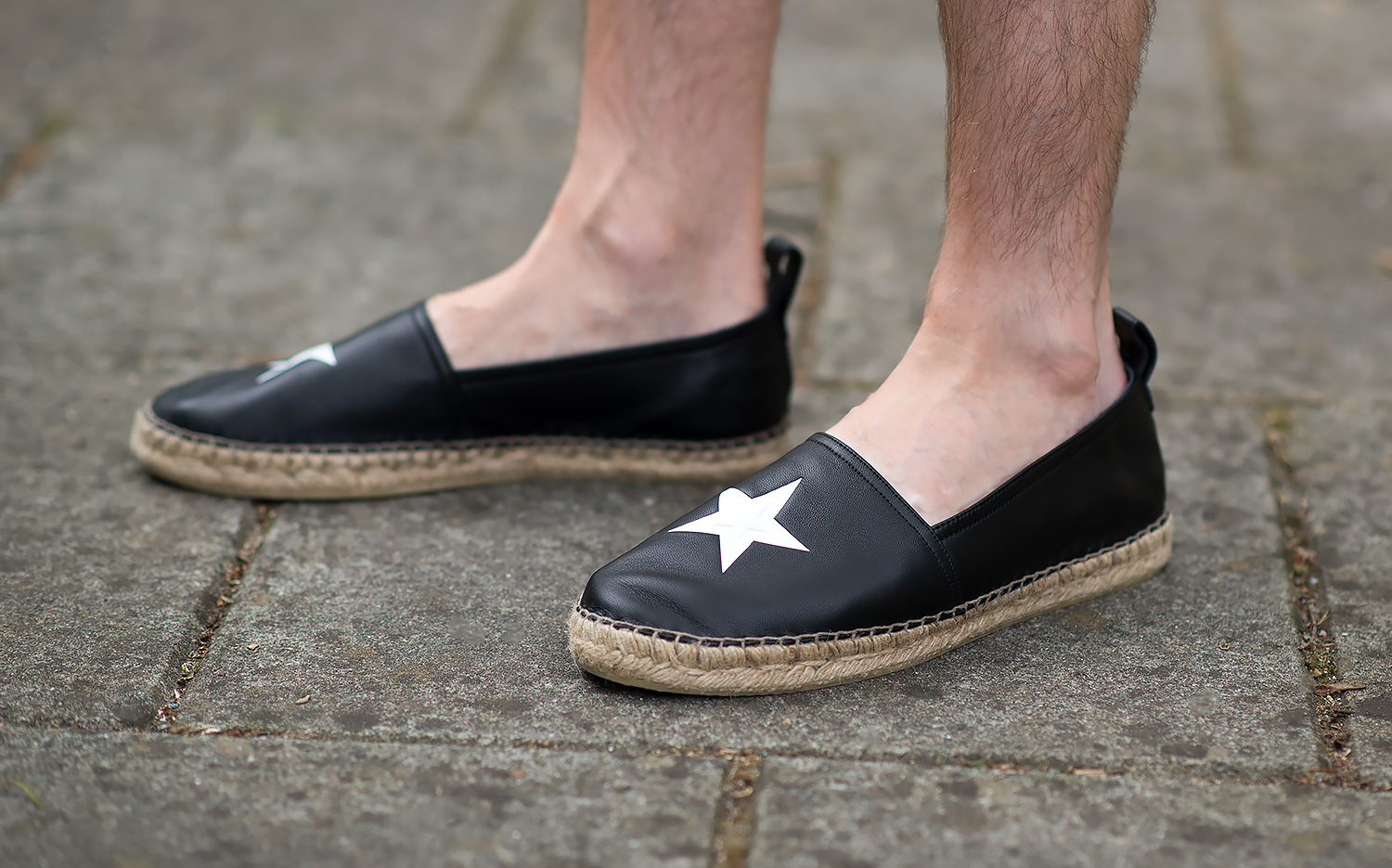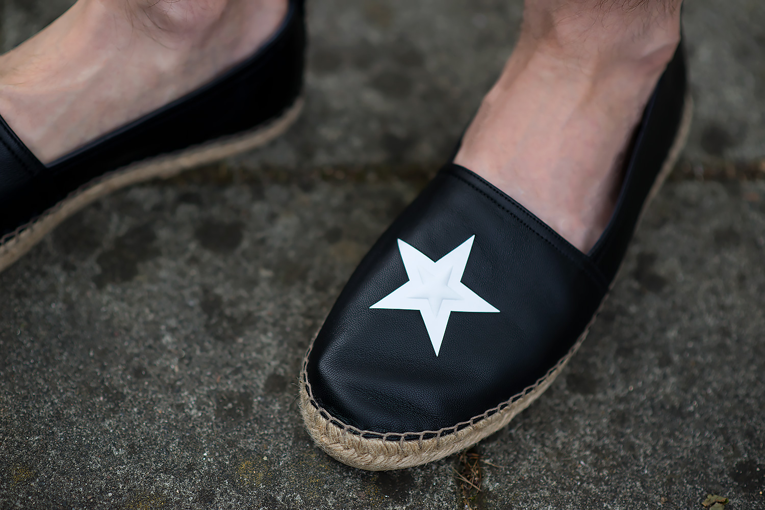 Previous years I have chosen summer footwear from a wide variety of brands – Bottega Veneta, Tods and their ilk. But more often than not, they end up chewing up my feet with excessive wear and time after time I slink back to my tried and tested Toms. They never hurt my hurt and are a fraction of the price! So once again I stepped out into unknown territory and chose a pair of Givenchy Star Embossed Leather Espadrilles from the French fashion label. Naturally I decided to give them a full review on my mens fashion blog.